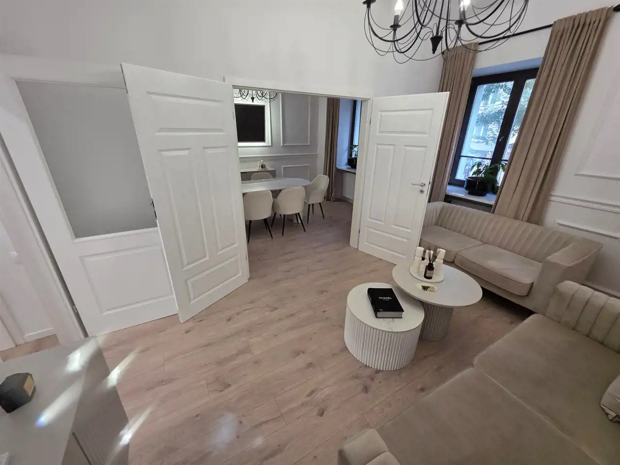 Mieszkanie znajduje się na parterze cichej kamienicy. Cały projekt po kompleksowej rewitalizacji.