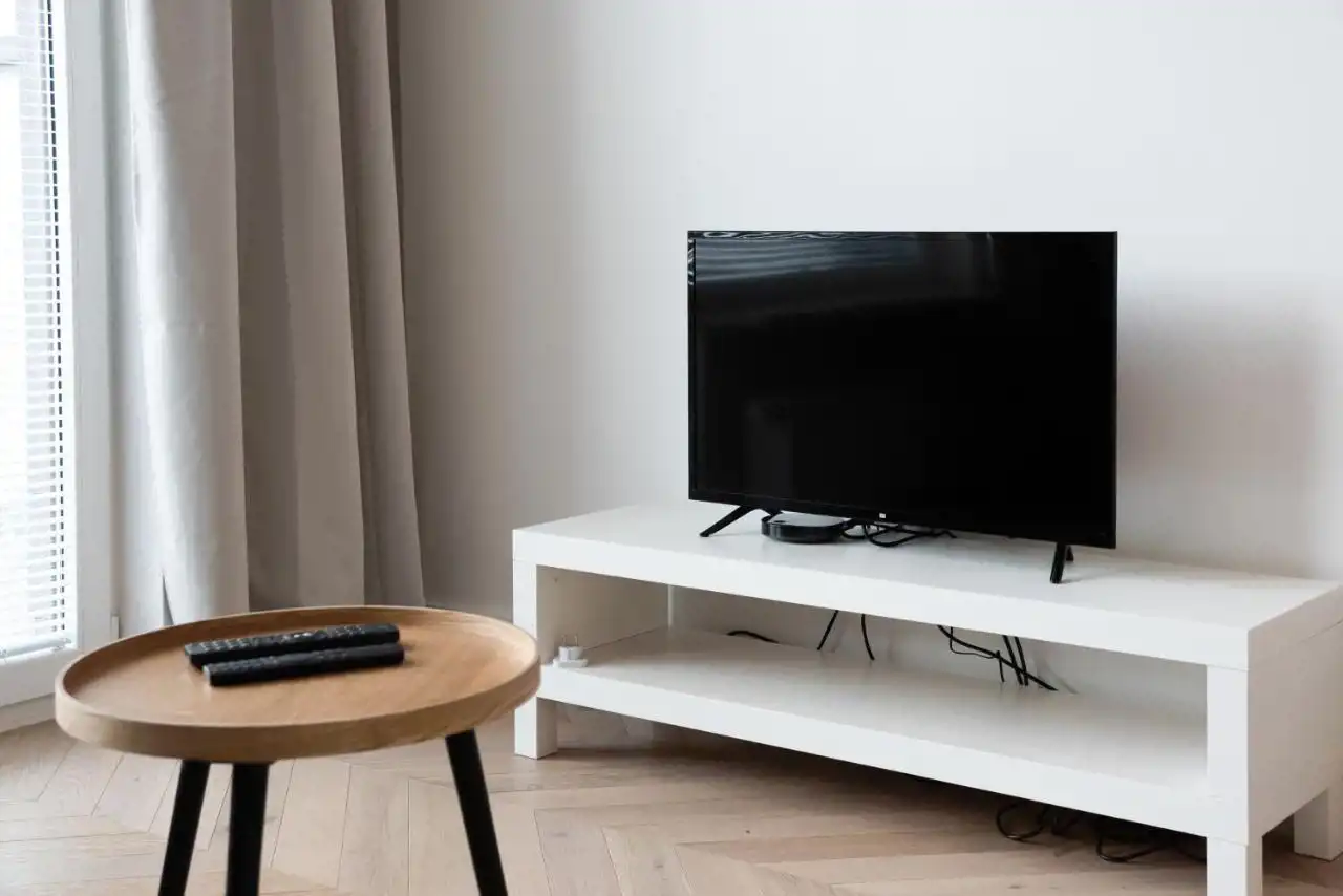 Salon z aneksem kuchennym, wyposażenie AGD (telewizor, płyta , piekarnik zmywarka ), sypialnia (łóżko z nowym materacem), łazienka z prysznicem ( pralka), otwarty przedpokój z szafą w zabudowie.