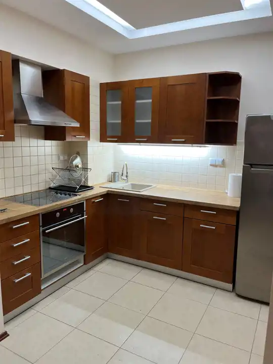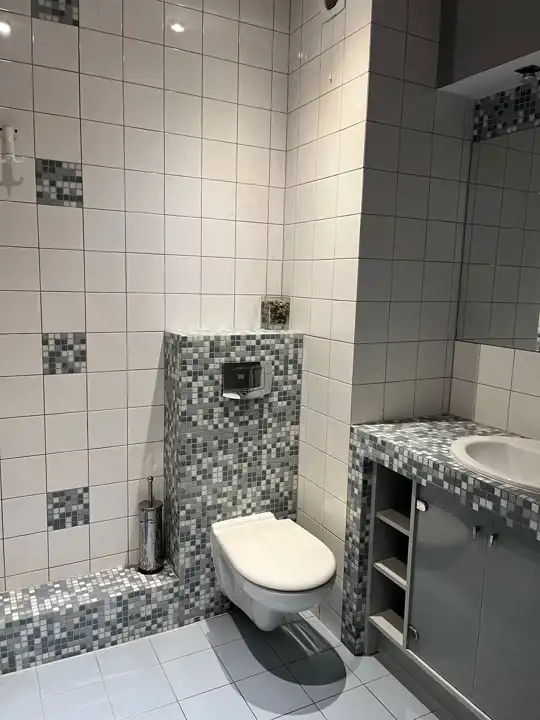 Mieszkanie ma salon z aneksem kuchennym, sypialnię, łazienkę z kabiną prysznicowa i mały hol.