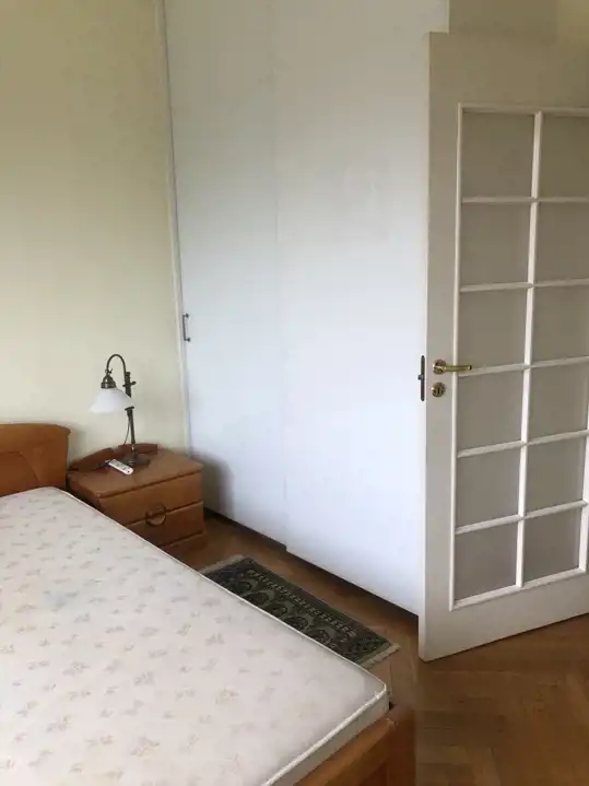 W przedpokoju i sypialni duże szafy. Na podłogach parkiet.