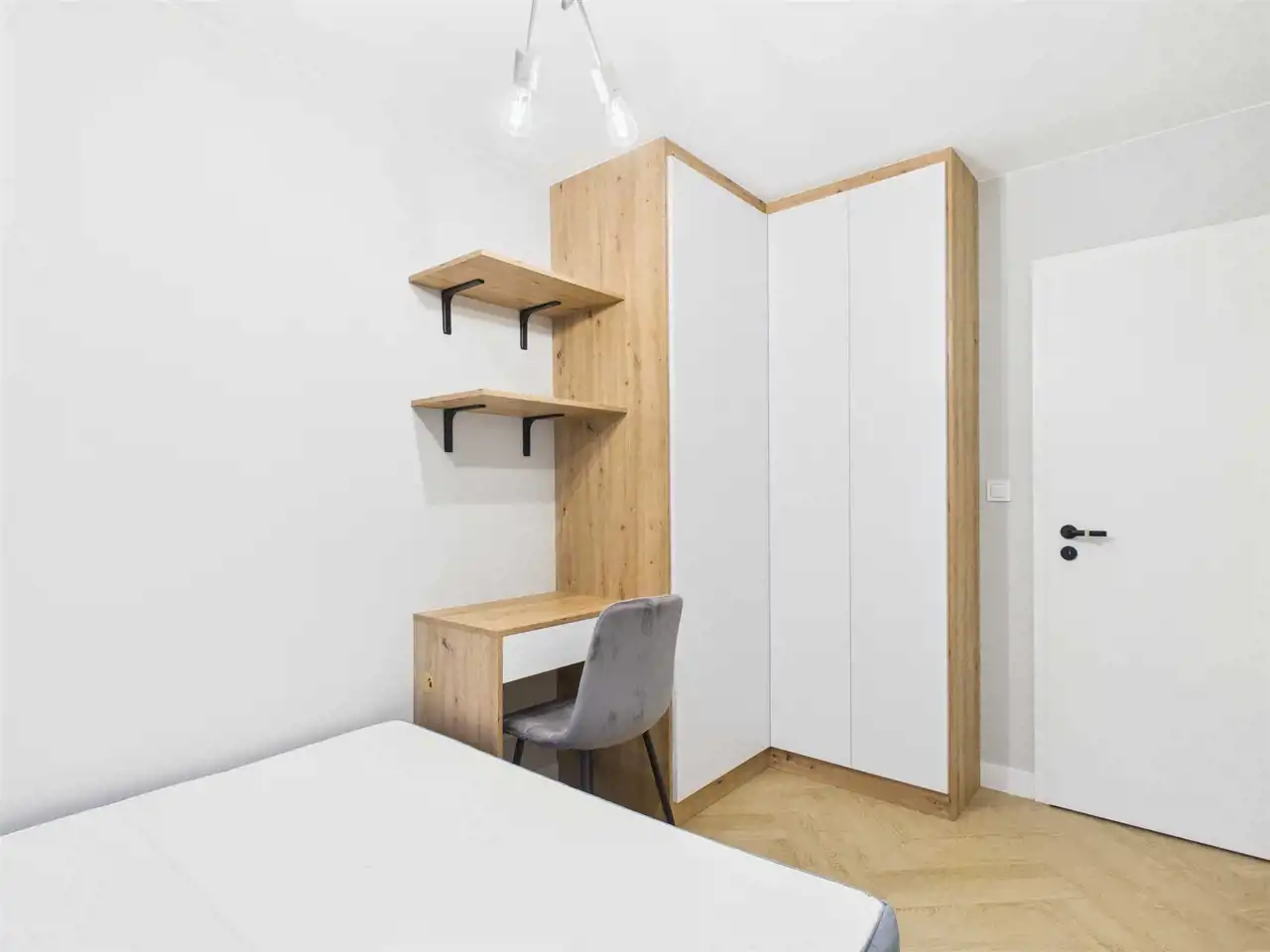 --> sypialnia ok. 10 m2 z łóżkiem 160x200 cm, szafami i biurkiem