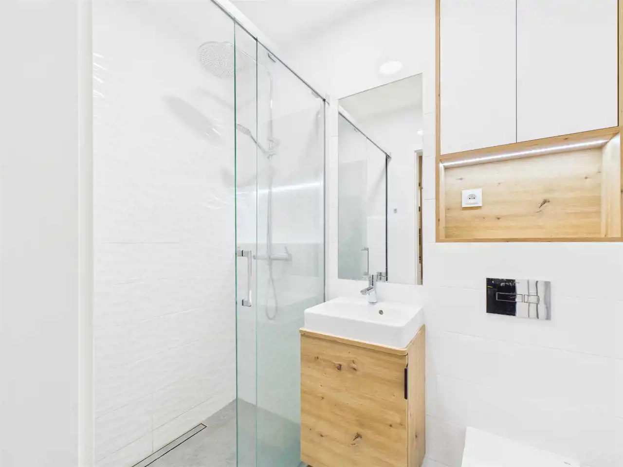 --> łazienka ok. 2,2 m2 z kabiną prysznicową, umywalką i WC