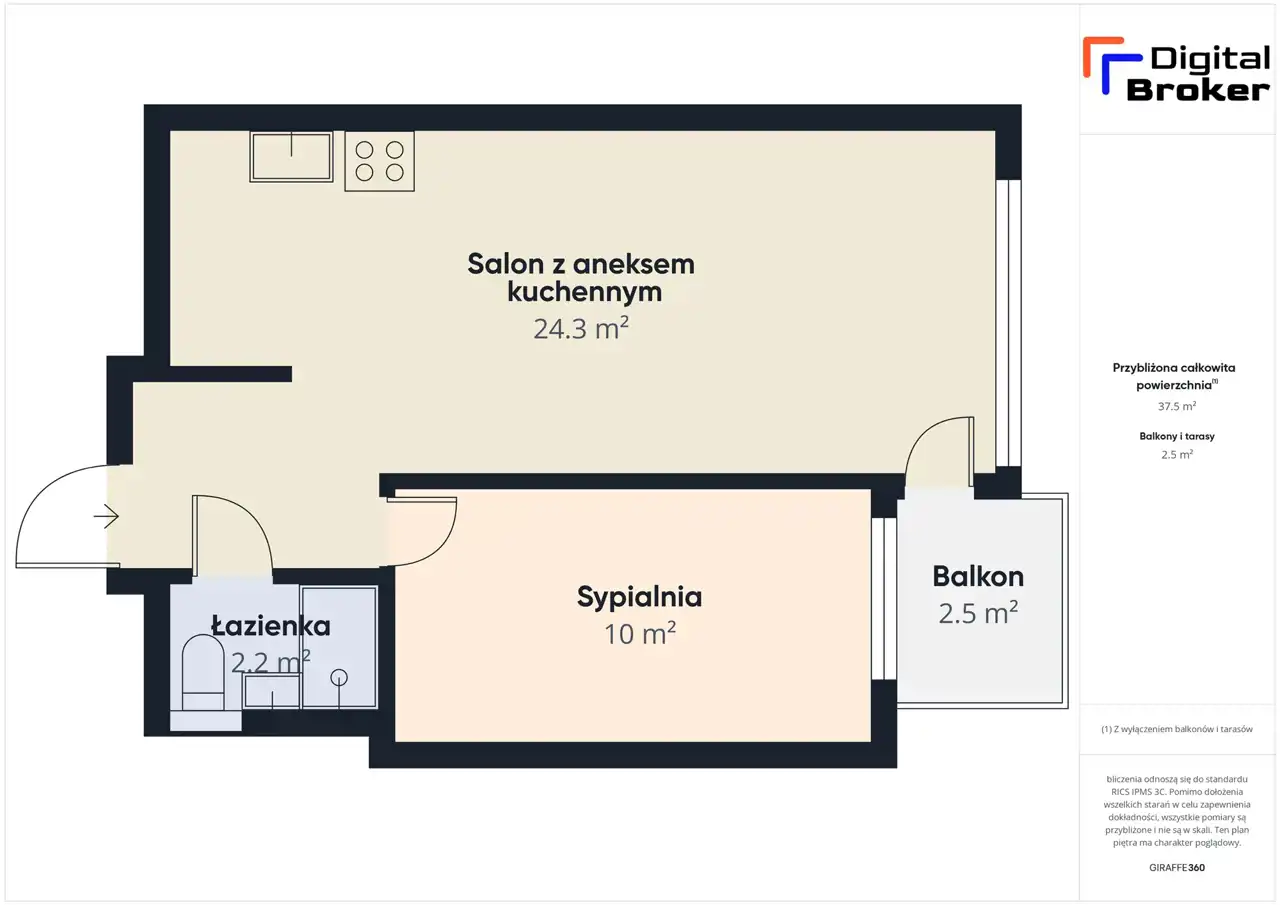 - Charakterystyka mieszkania 37.5 m2, 2 pokoje