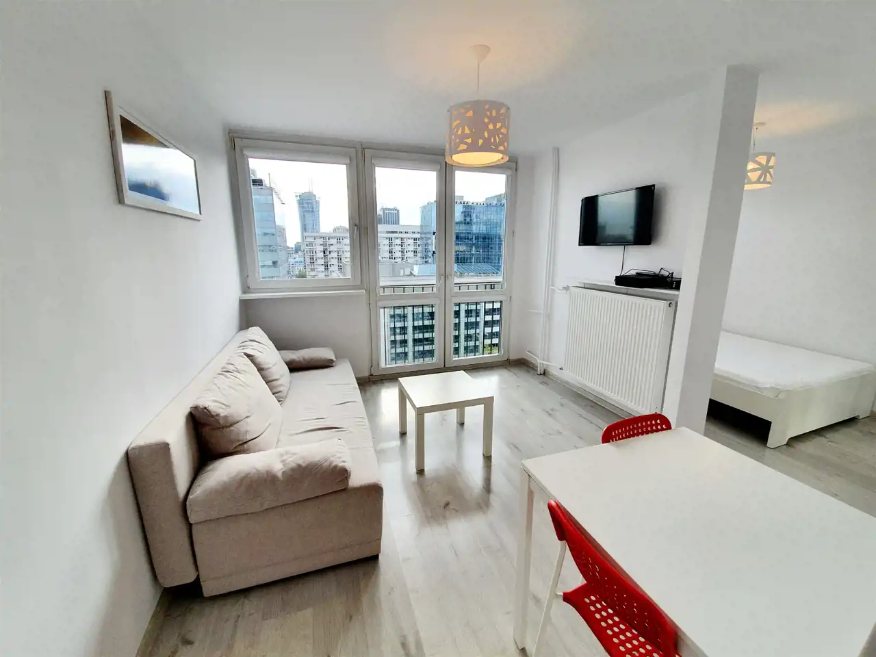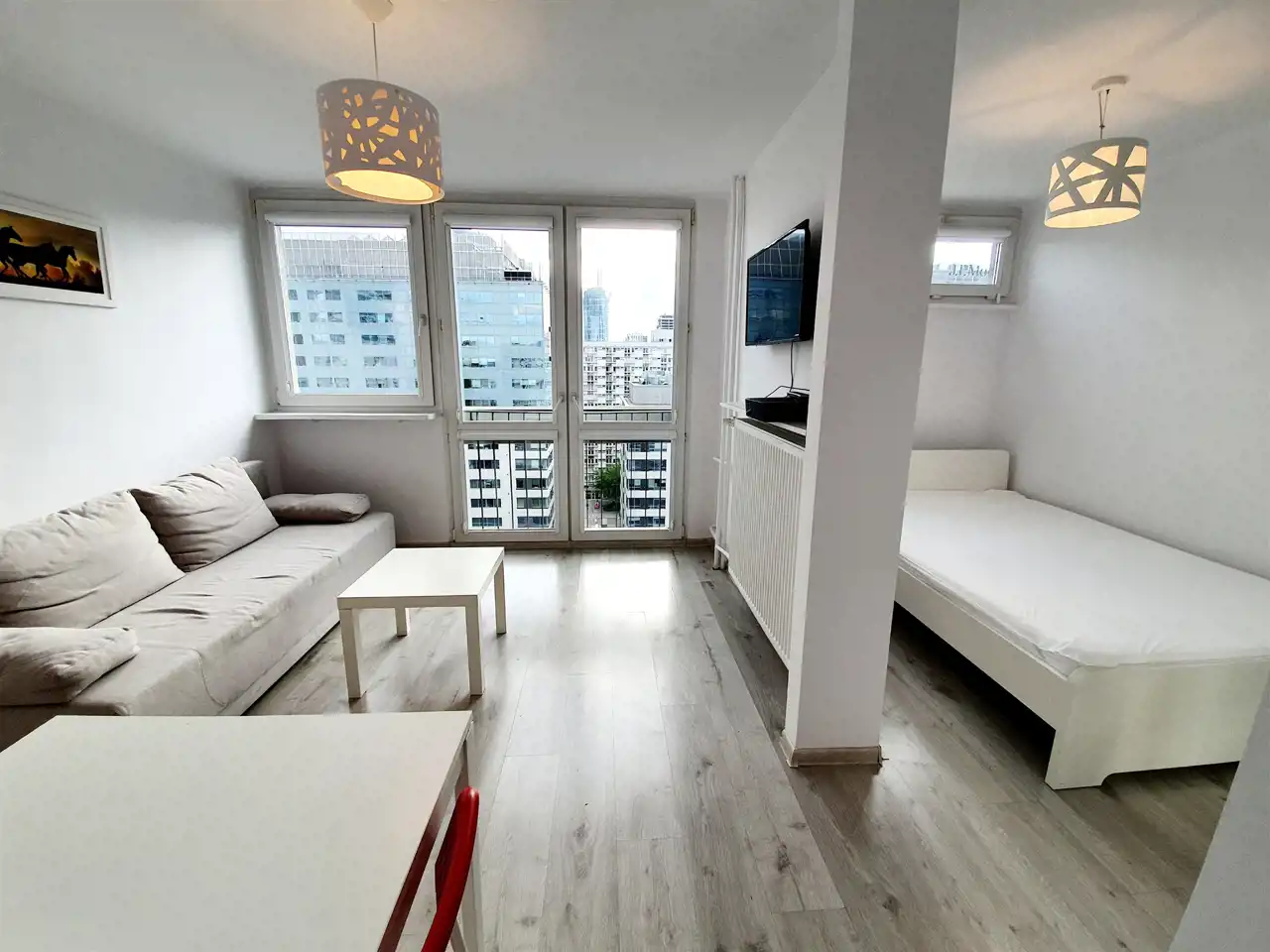 I am offering a 27 m² studio apartment with a sleeping niche for rent, located at Aleja Jana Pawła II 20, right in the heart of Warsaw’s business district. The apartment is situated on the 14th floor, offering a stunning panoramic view of Warsaw’s “Manhattan” — the skyscrapers around Rondo ONZ.
