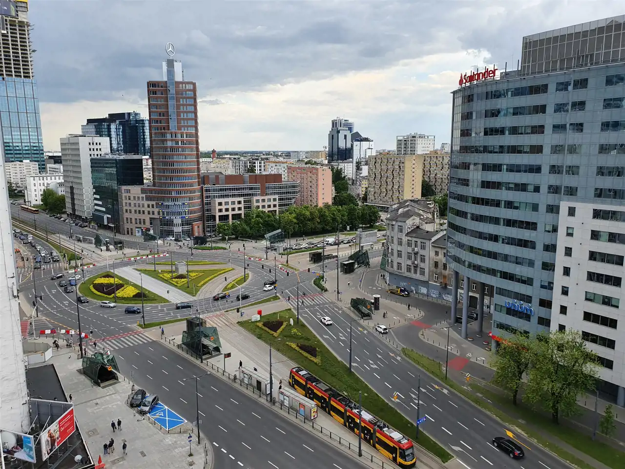Spectacular skyline view of the ONZ roundabout & Warsaw’s high-rise district
