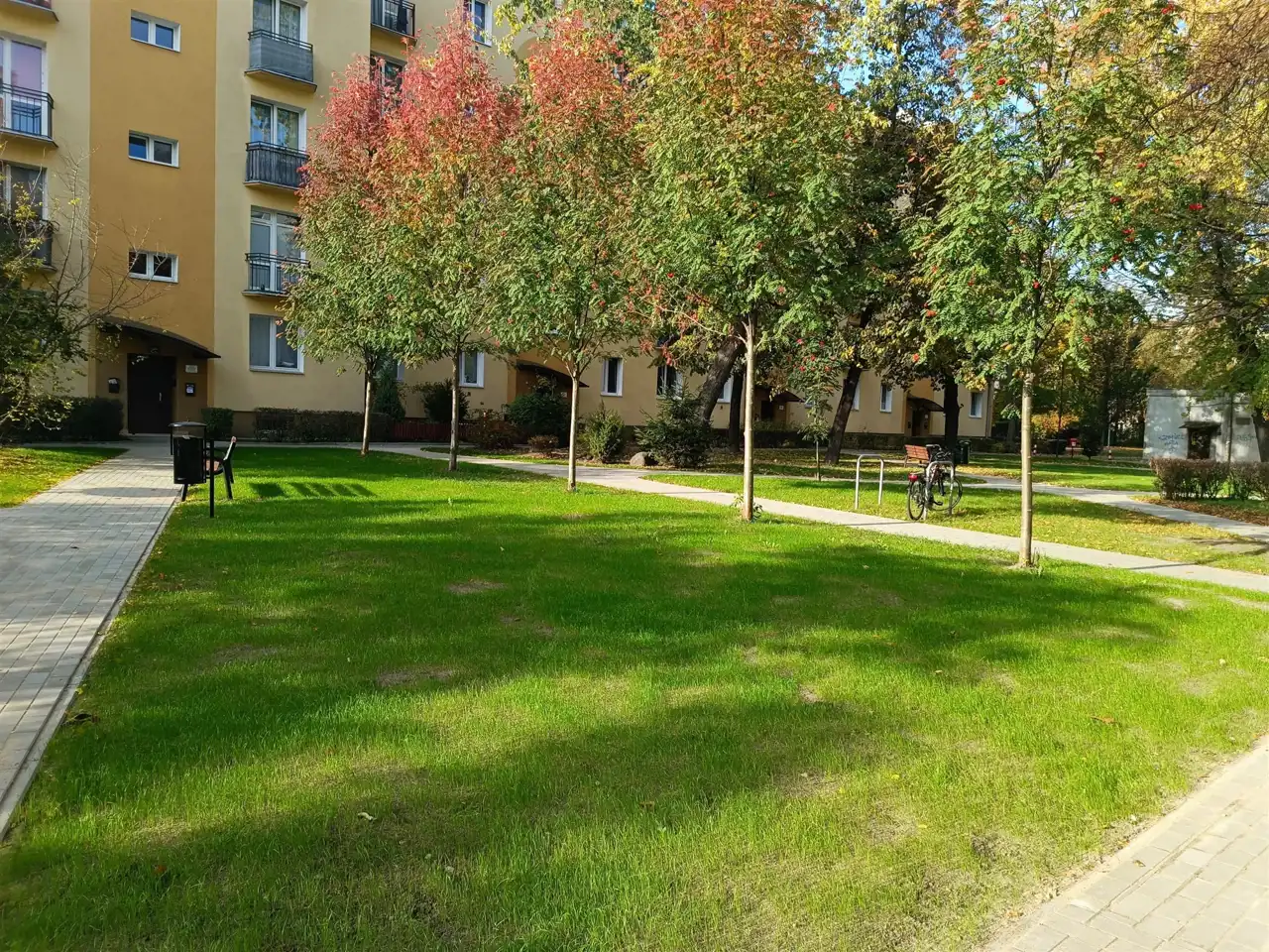 Widok z okien na na przestrzeń miedzy budynkami (nikt nie zagląda w okna). Ładnie zagospodarowane podwórze.