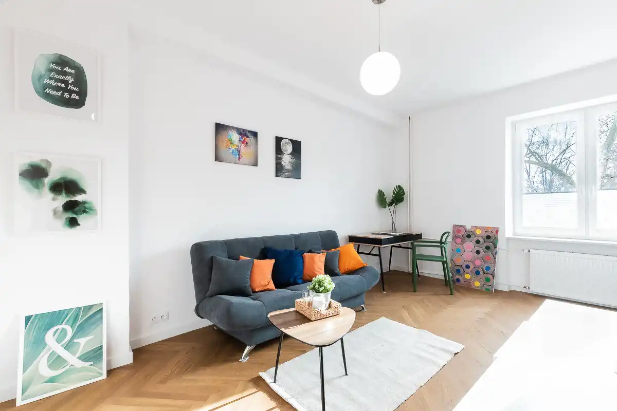 Minimalistyczny styl mieszkania stanowi idealną bazę do własnej dekoracji.