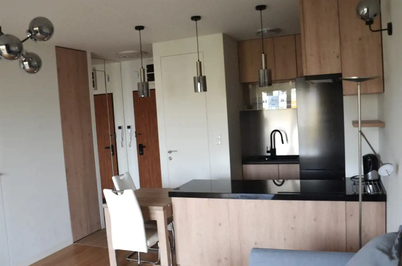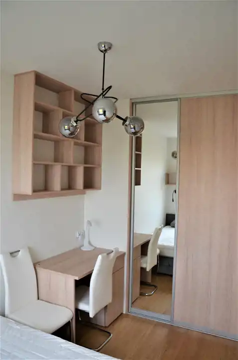 The apartment is in a very good location, just 50 meters from the Kabaty metro station, with an outdoor gym right next to the building, and close to the Kabaty Forest. The complex is gated, with security, cameras, CCTV, a beautiful enclosed green patio, and the building is set back from KEN Avenue. The building was built in 2004, there is a 20-meter swimming pool (accessible from the apartment without leaving the building) and a fitness center. The apartment 40 m² includes a 24 m² living room with a kitchenette, a 10 m² bedroom, a 5 m² bathroom, a 2.5 m² separate toilet, and a 4 m² balcony (with a nice view, with no buildings opposite). The apartment is fully furnished. The price includes a convenient parking space in the underground garage and a large storage unit (6 m²). Additionally, there is a monthly administrative fee of PLN 600 and a PLN 300 monthly advance payment for utilities (including UPC TV, Wi-Fi, electricity, and any excess water and heating). Refundable deposit equal to one month's rent. Minimum lease term: one year.