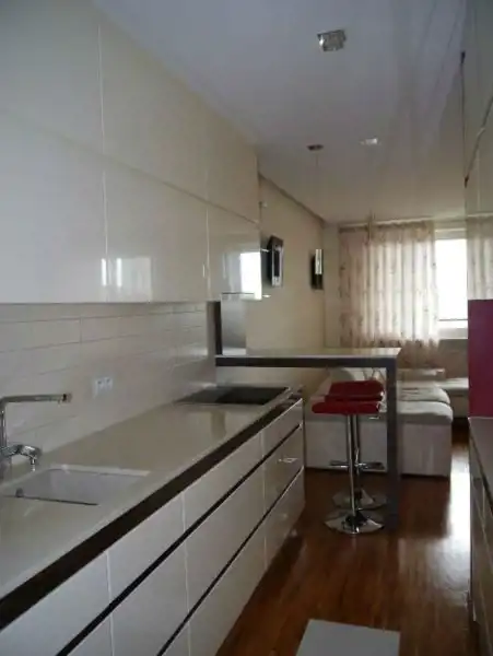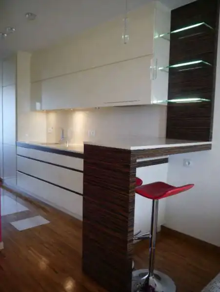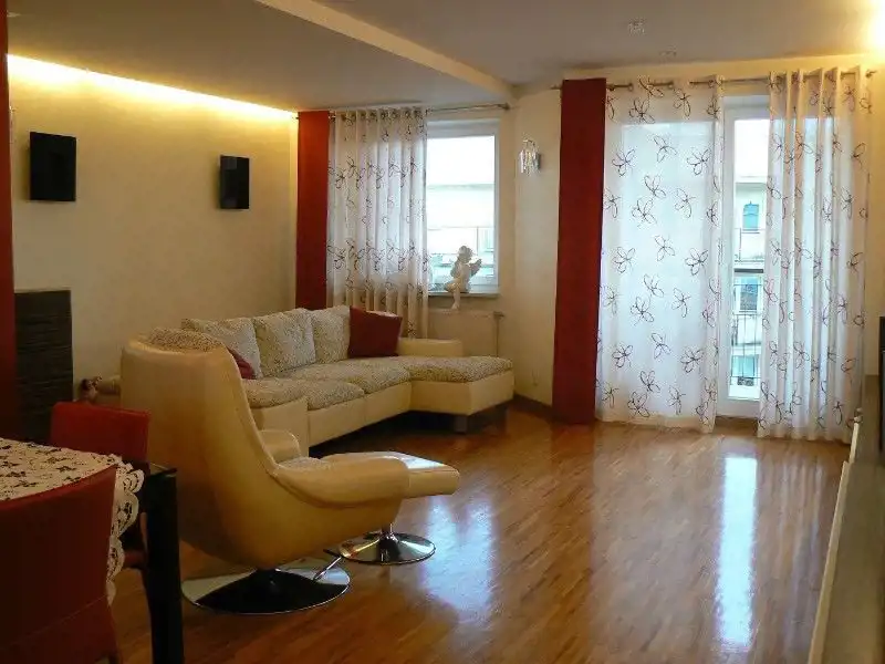 Apartament 80 m2 znajduje się na 4 piętrze i składa się z salonu z aneksem kuchennym (45m2) i balkonem, gabinetu/sypialni, sypialni, łazienki i korytarza. Apartament jest bardzo jasny i przestronny, w pełni umeblowany i urządzony w wysokim standardzie (pełne AGD, pralka, zmywarka, szafy przesuwne, kanapy, LCD itp.). Stan idealny.