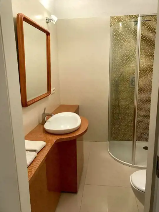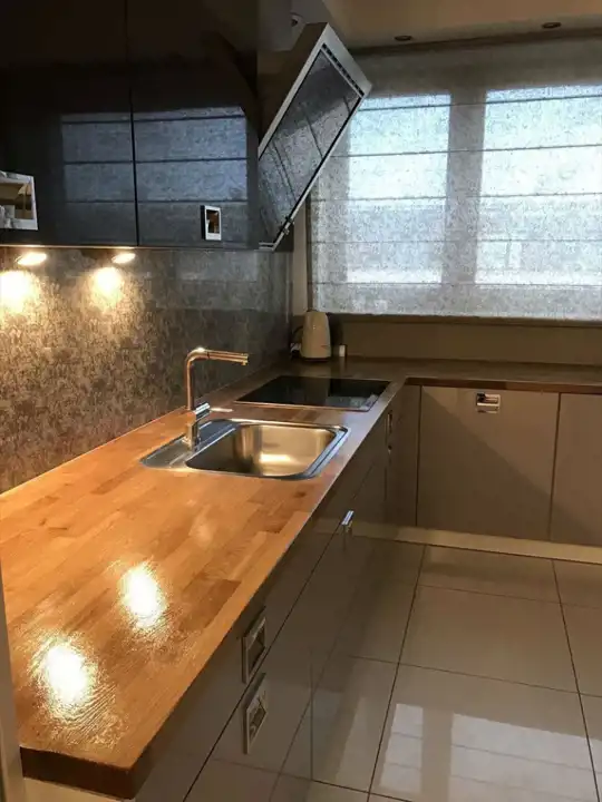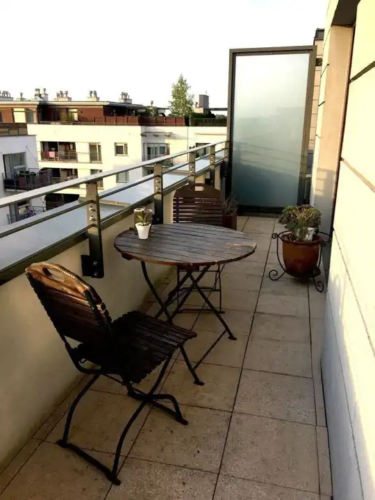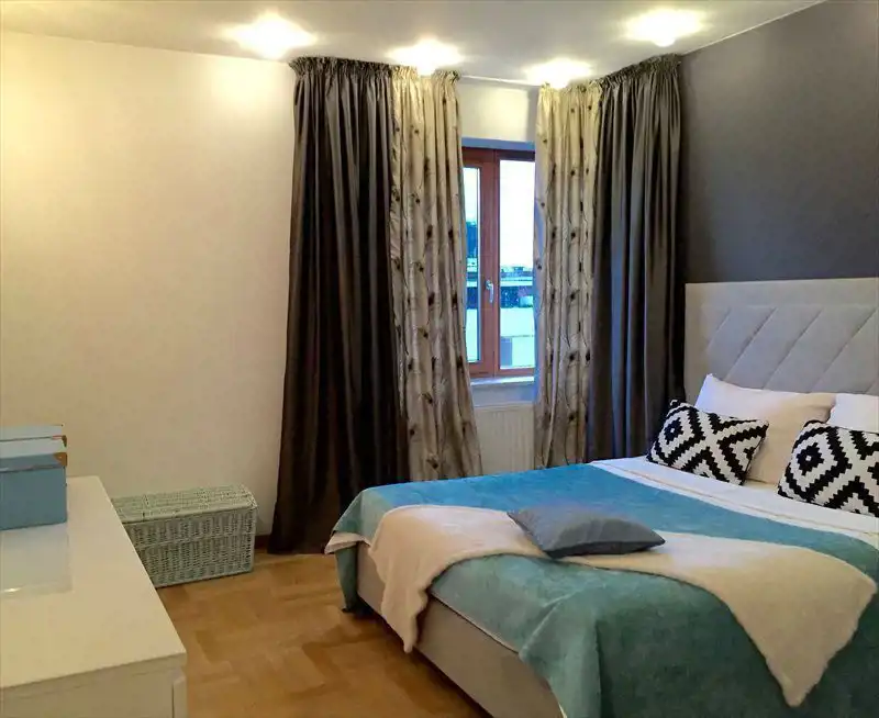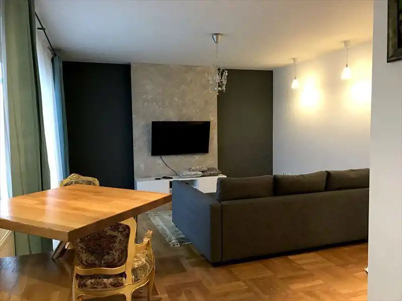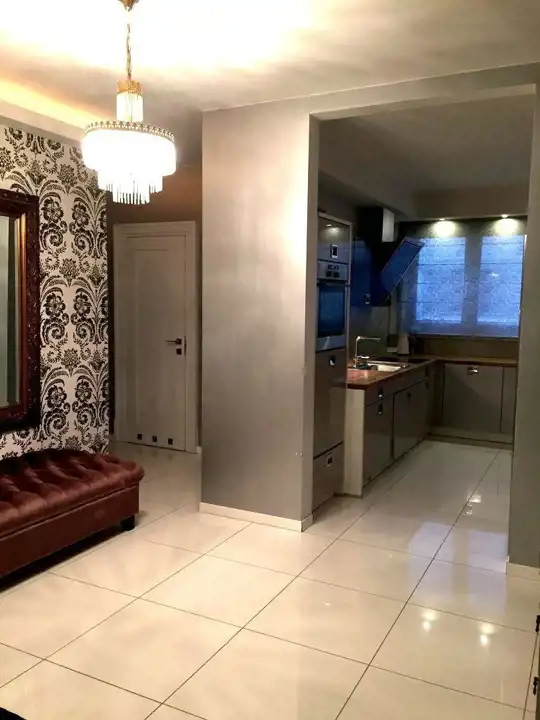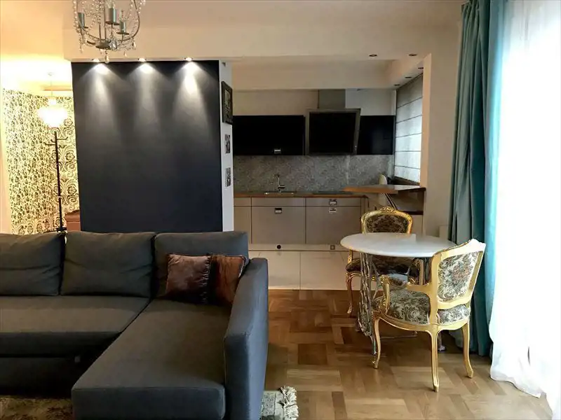 Luksusowy, nowoczesny apartament typu studio o powierzchni 77m2 znajdujący się na ostatnim piętrze 4 kondygnacyjnego budynku. Do mieszkania przynależą : przestronny salon połączony z otwartą kuchnią, duży hall, łazienka, toaleta gościnna z wygospodarowanym miejscem na pralkę. Mieszkanie posiada również balkon oraz podwójne miejsce parkingowe. Apartament został wykończony przy użyciu najwyższej klasy materiałów oraz sprzętów. Nieruchomość w pełni urządzona. W salonie znajduje się duży telewizor, wygodna kanapa z dodatkową funkcją spania, szafka, marmurowy stół, 2 krzesła oraz stolik kawowy. Na podłodze w salonie oraz sypialni ułożono szlachetną dębową podłogę. W sypialni ustawiono duże łóżko, pojemna szafę, komodę, telewizor oraz szafkę nocną. Kuchnia wyposażona jest w pełną zabudowę z płytą grzewczą, piekarnikiem, dwudrzwiową lodówką z zamrażarką oraz winiarką i zmywarkę.