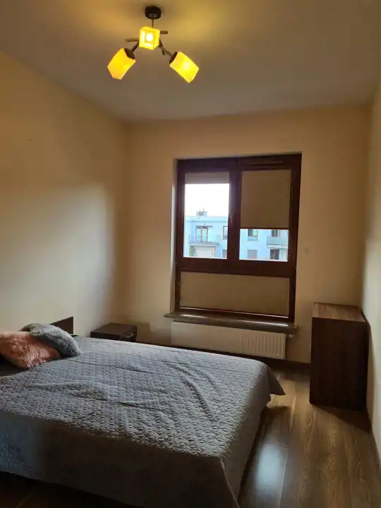 - przytulna sypialnia z podwójnym łóżkiem, szafą, komodą, szafkami nocnymi,