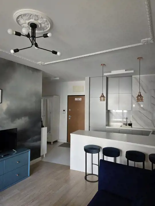 Mieszkanie położone na pierwszym piętrze z widokiem na ciche patio. Składa się z dwóch pokoi, łazienki z wc, przedpokoju. Pięknie zaaranżowane, zaprojektowane mieszkanie przez architekta z dbałością o każdy szczegół. W pełni umeblowane. Gotowe do zamieszkania. Zdjęcia załączone do oferty nie odzwierciedlają uroku mieszkania. Do mieszkania przynależy duża loggia na którą wchodzimy z pokoju dziennego i sypialni. Przed budynkiem miejsca postojowe, ogólnodostępne położone w strefie parkowania.