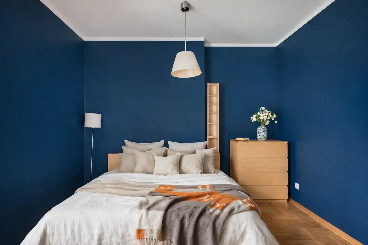 Sypialnia – podwójne łóżko z materacem, pojemne komody i szafka RTV,
