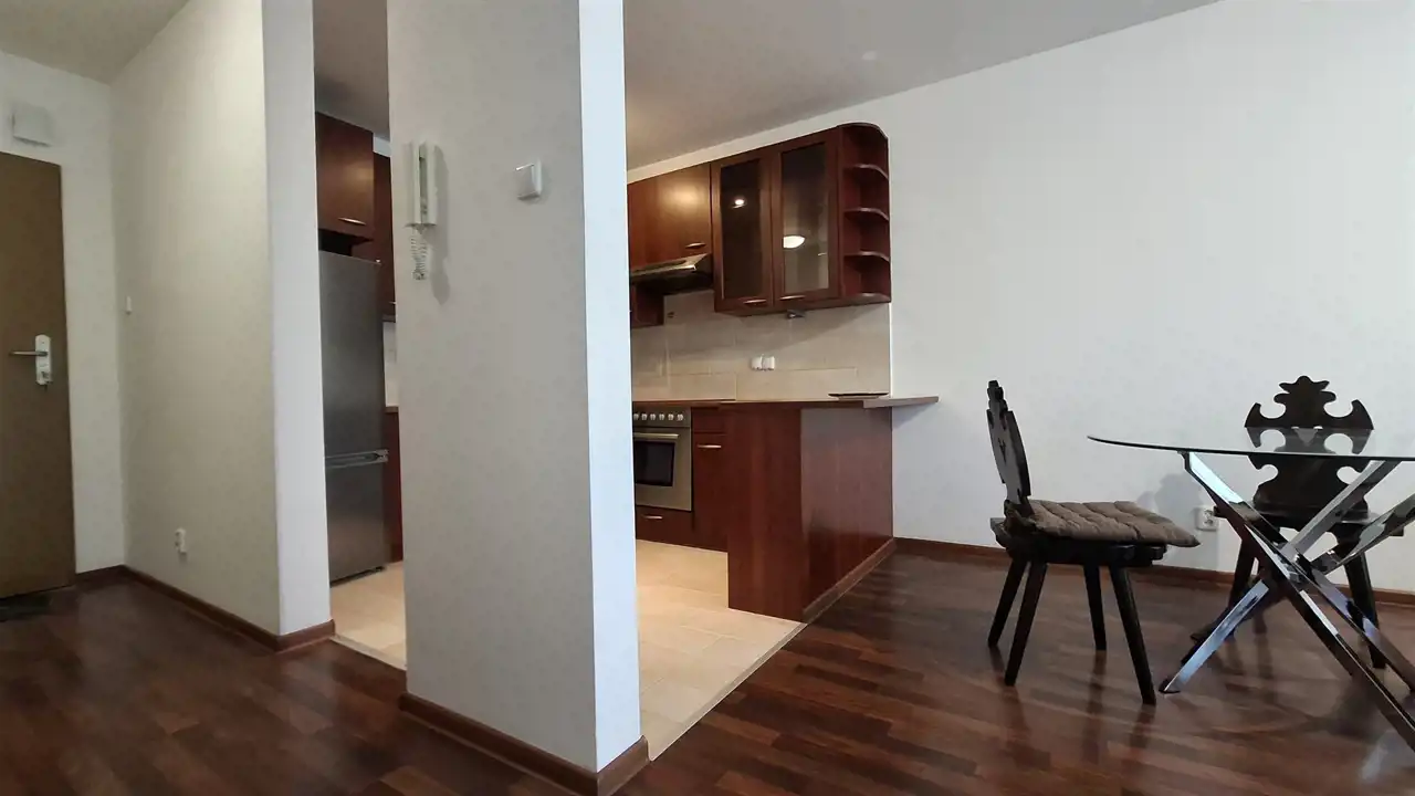 For rent, a 2-room apartment with an area of 48.70 m², consisting of an open living room with a kitchen, bedroom, hallway, bathroom, and spacious loggia. The apartment is located in the Wola district (a 5-minute drive to the city center) at 15 Łucka Street, on the 17th floor (31 floors in the building). The apartment is located between the Rondo Daszyńskiego and Rondo ONZ metro stations, with numerous tram and bus lines nearby. Nearby: Warsaw Spire, the Norblin Factory, Warsaw Brewery, Złote Tarasy shopping center, the Palace of Culture, and the Central Station. The building was built in 2004.