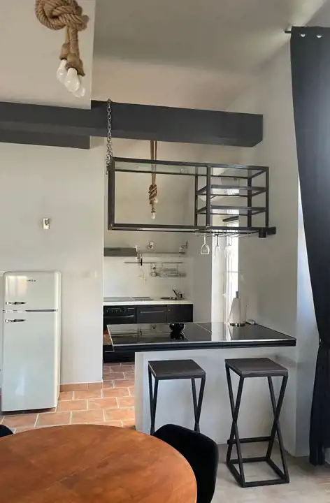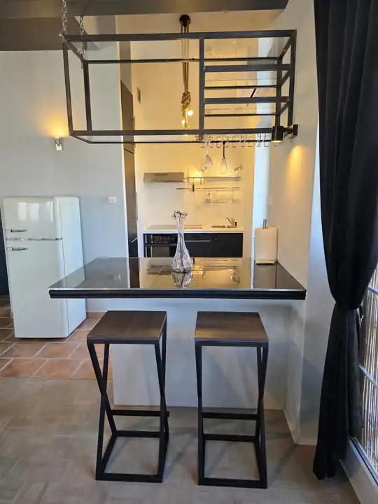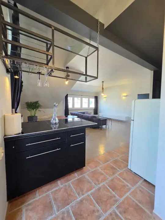 Na powierzchnię składa się: pokój dzienny około (45 m2) wysoki miejscami na 3,5 m z niewielkim (raczej symbolicznym) aneksem kuchennym.