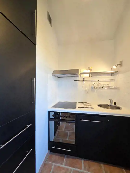 Aneks kuchenny z płytą elektryczną ceramiczną, lodówką, zmywarką do naczyń. W łazience pralka.