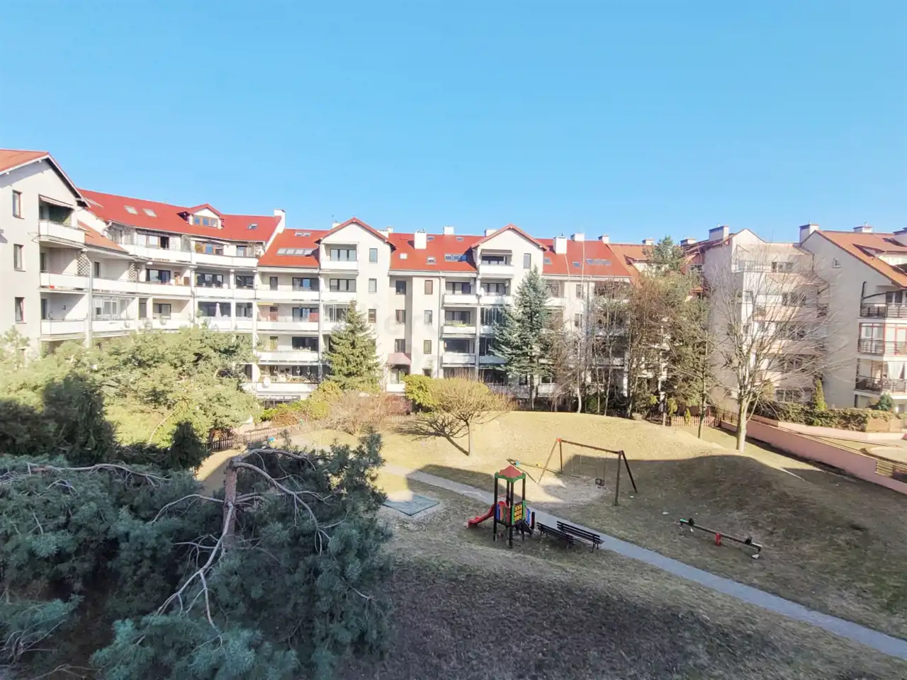 Teren osiedla ogrodzony i strzeżony, zadbany z dużą ilością bardzo ładnie utrzymanej zieleni i placem zabaw.