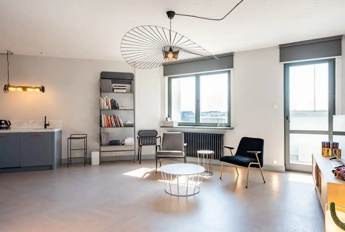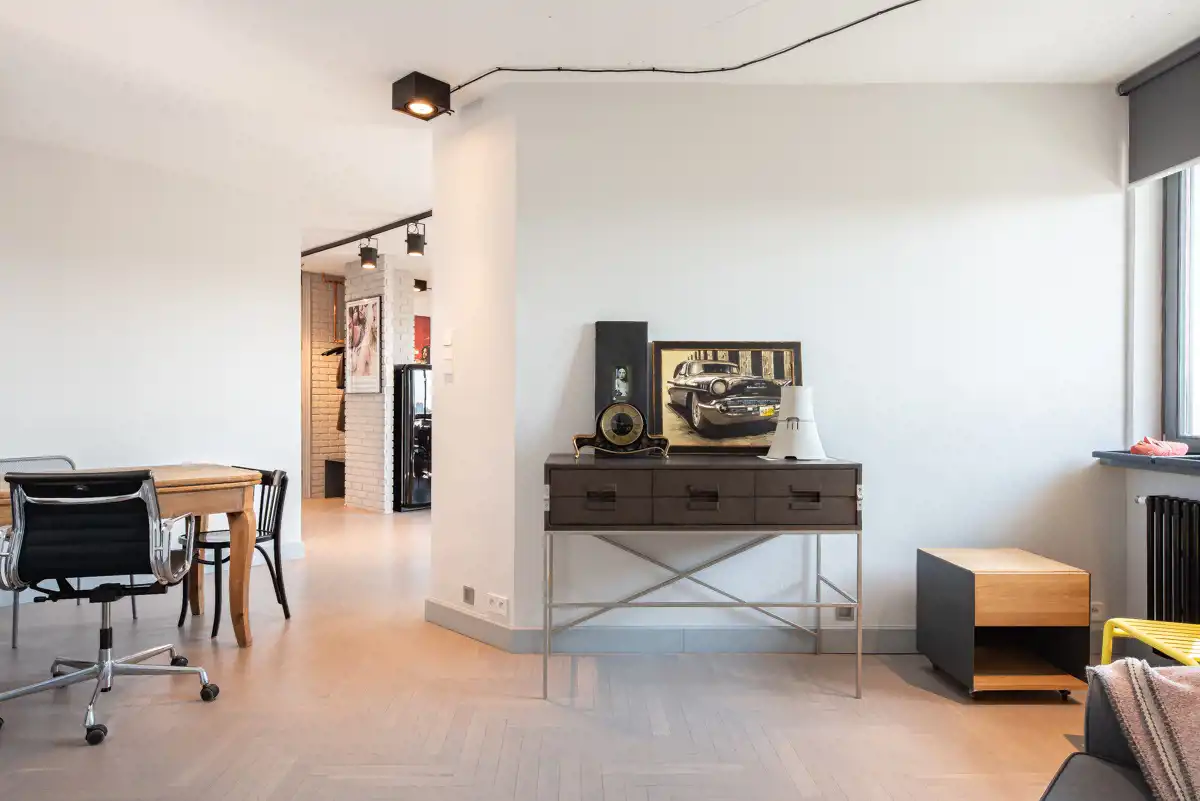 Mieszkanie urządzone bardzo eklektycznie a przy tym harmonijnie, daje dużo radości z przebywania wśród pięknych mebli, dodatków i szlachetnych materiałów użytych do wykończenia wnętrza.