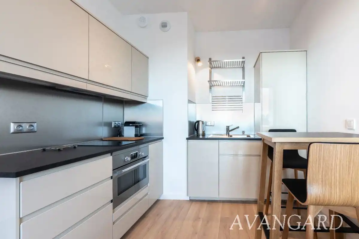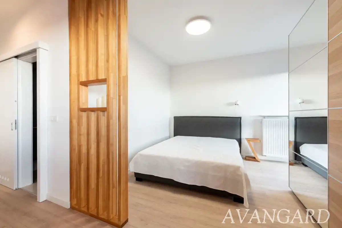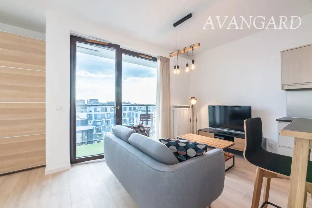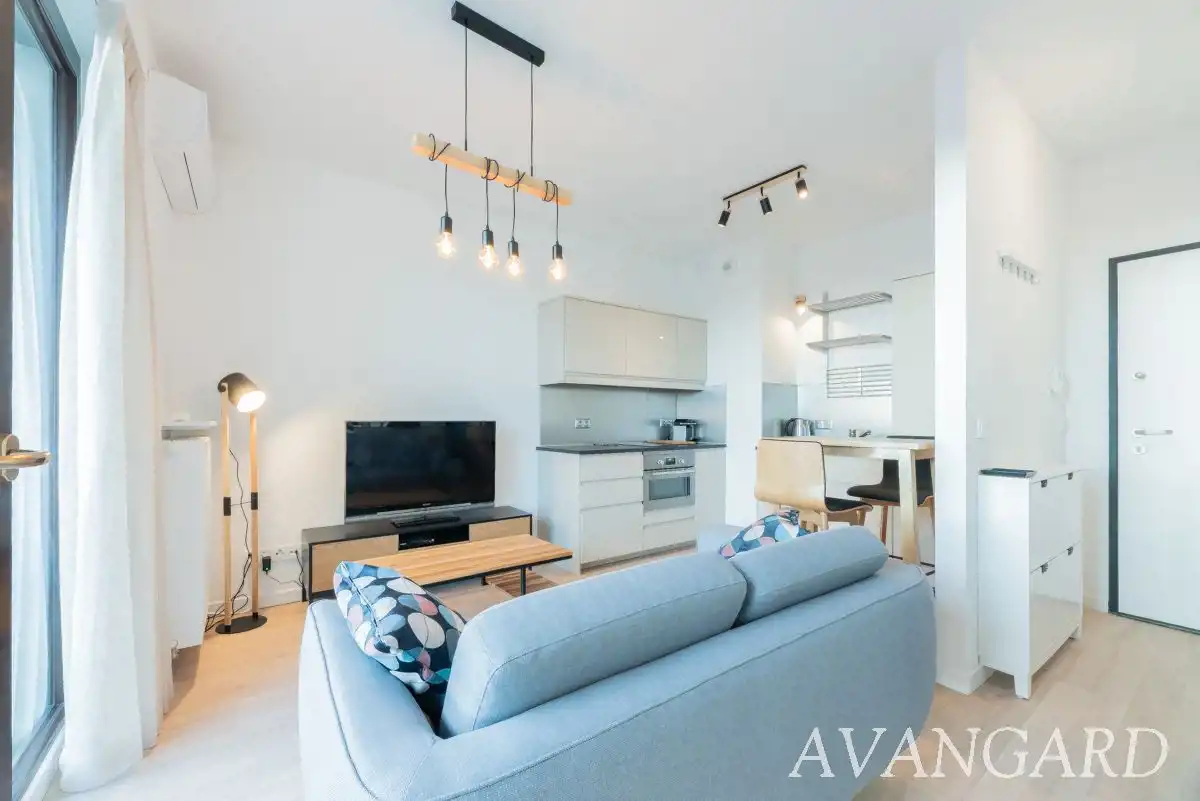 Oferujemy do wynajęcia od września, elegancki apartament zaaranżowany strefowo z podziałem na aneks kuchenny, cześć wypoczynkową, WIDNY aneks sypialny i łazienkę.