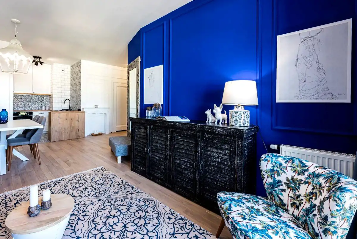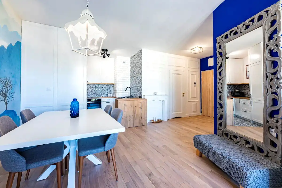 Klimatyczne wnętrze wykończone przez architekta w bardzo wysokim standardzie, umeblowane designerskimi meblami i dodatkami.