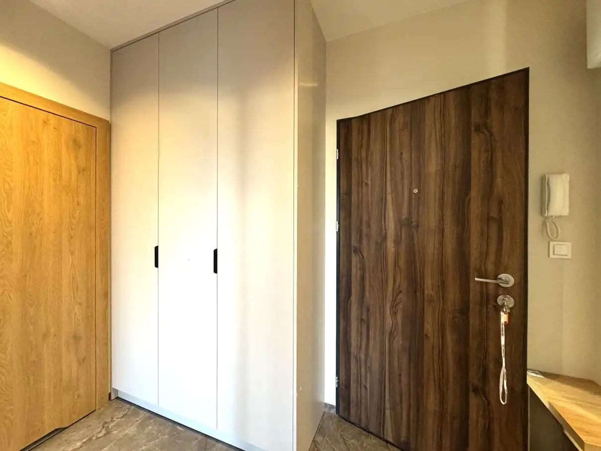 Mieszkanie składa się z pokoju dziennego połączonego z kuchnią w aneksie, sypialni, gabinetu, łazienki z dużą kabina prysznicową, przedpokoju. Duży balkon (loggia) na, który możemy wyjść zarówno z salonu jak i z sypialni.