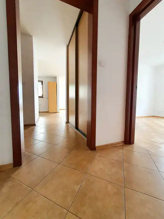 Rozkład: pokój dzienny (ok. 37 m2) z wyjściem na taras (ok. 10m2) + otwarta kuchnia, dwie sypialnie (13m2/12m2), łazienka z WC, dodatkowo osobne WC, przedpokój.