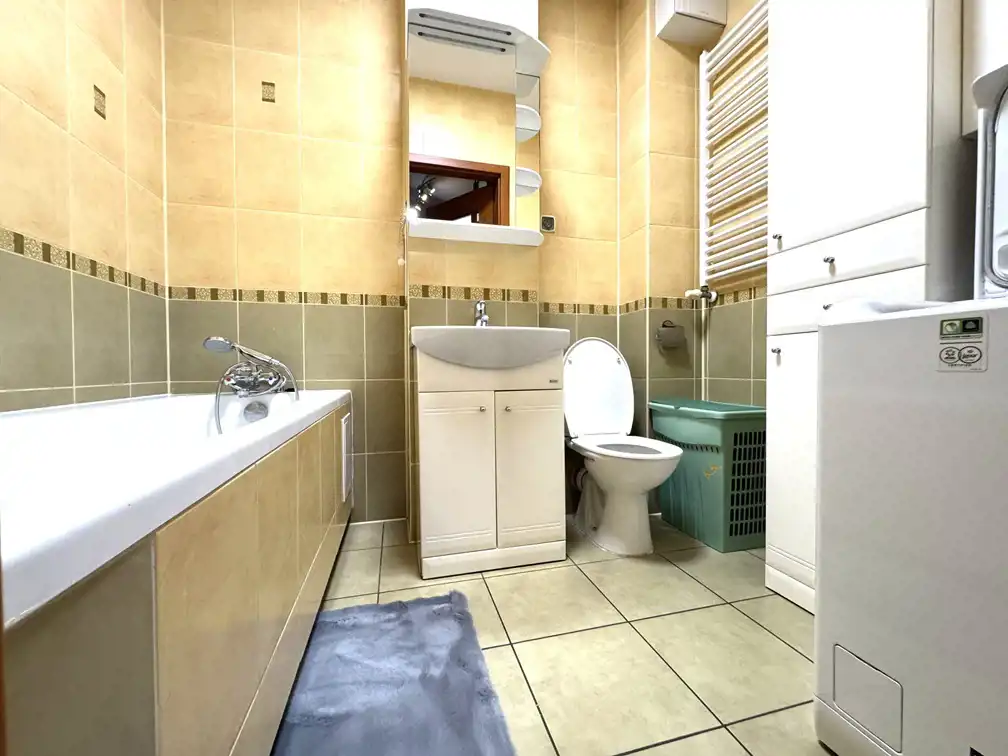 Łazienka: wanna, wc, pralka, umywalka, szafka;