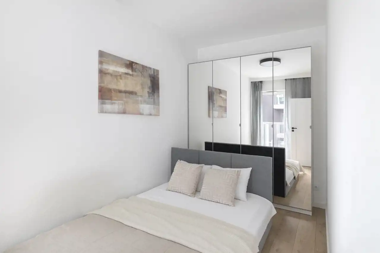 Pomimo centralnego położenia, ulica Siedmiogrodzka pozostaje cicha i spokojna, dzięki czemu mieszkanie oferuje komfortowy odpoczynek po intensywnym dniu pracy.