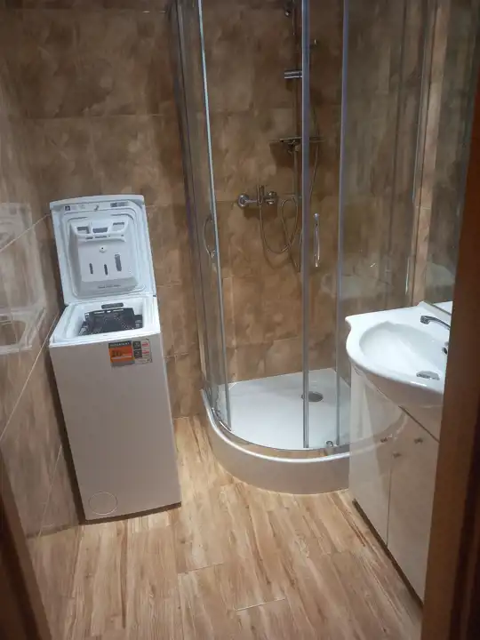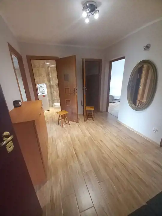 Trzypokojowe mieszkanie z oddzielną kuchnią, łazienką , wc, przedpokojem. Rozkładowe, do każdego pokoju, kuchni jest wejście z korytarza. Mieszkanie dwustronne w pełni umeblowane. Duża ,widna kuchnia , wyposażona w niezbędny sprzęt AGD, lodówka z zamrażarką, okap, 4 palnikowa kuchenka gazowa, brak piekarnika i zmywarki,dolne i górne pólki, stół i krzesła. Łazienka z prysznicem, jest pralka. Osobno wc. Duża loggia.