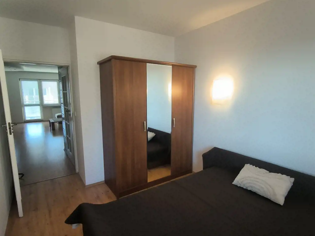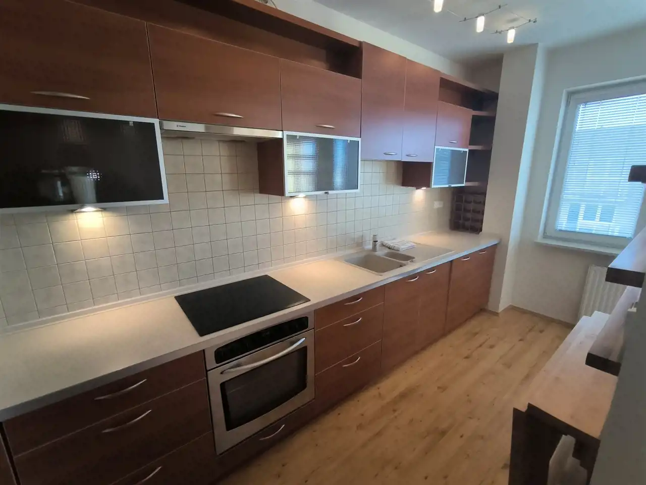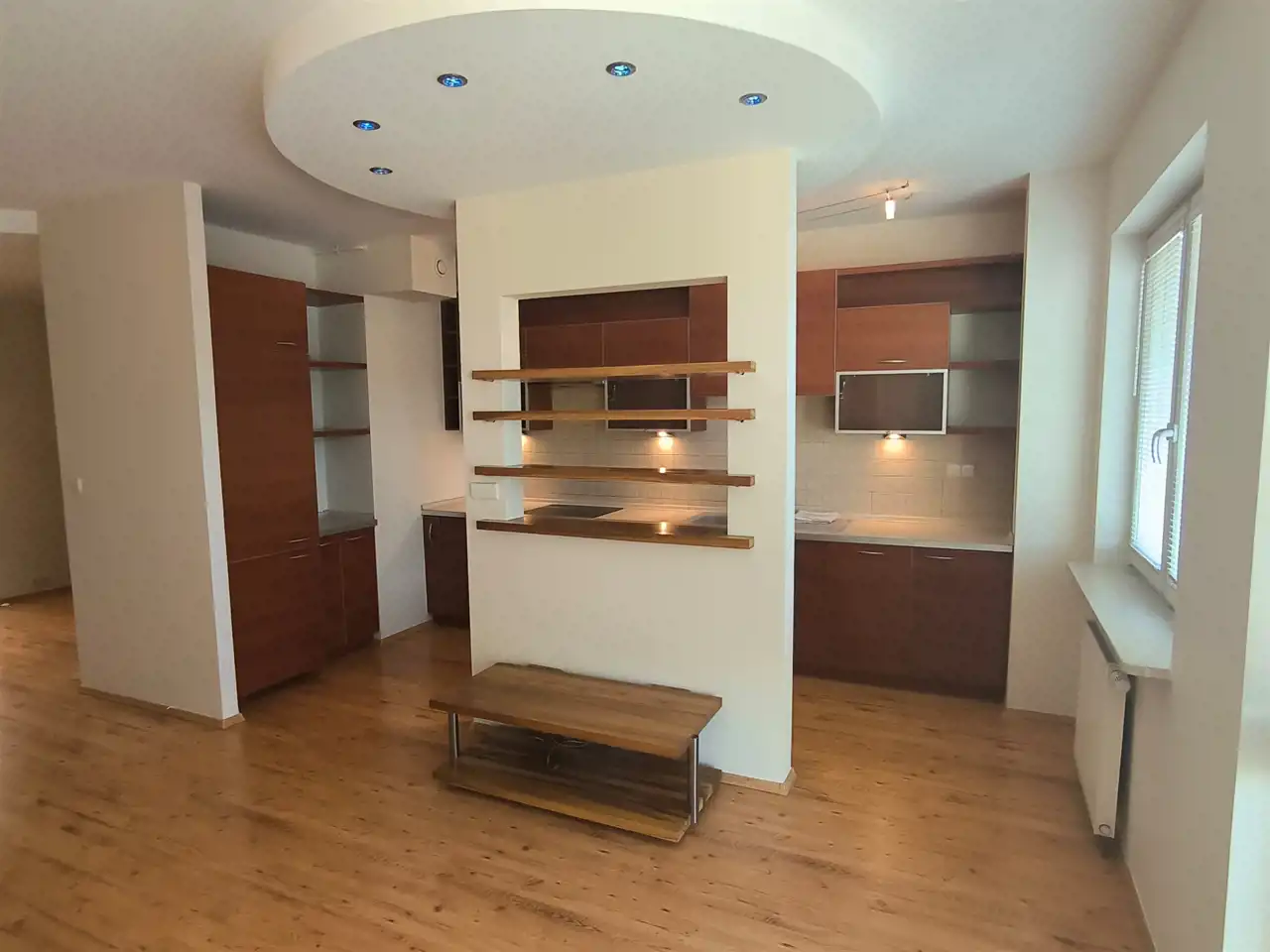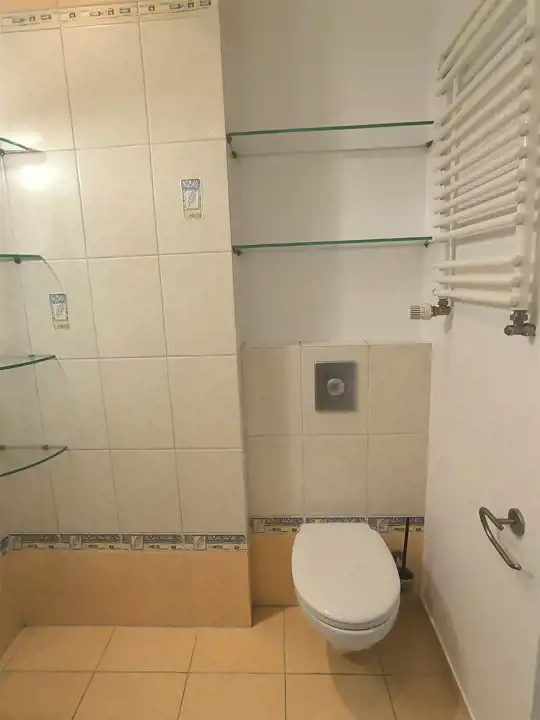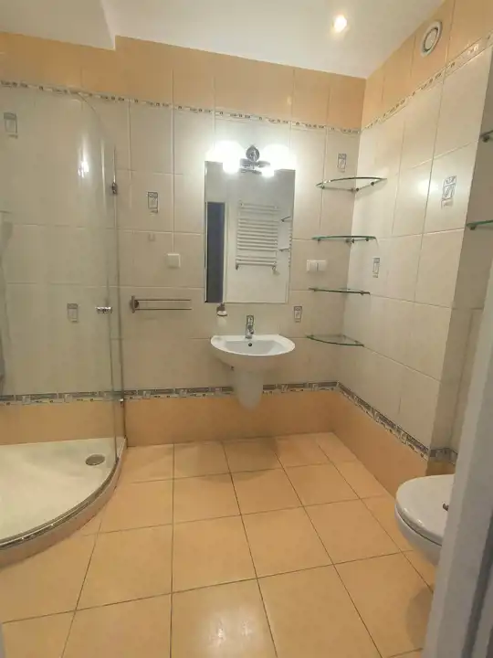 Lokal jest w b. dobrym stanie. Został cały odmalowany. W salonie, częściowo połączonym z kuchnią jest kanapa (nowa), ława, stół i 4 nowe krzesła. Kuchnia w pełni wyposażona, w ostatnich 3 latach została wymieniona lodówka, zmywarka oraz płyta indukcyjna. Pokoje umeblowane, są łóżka. Z przedpokoju jest wejście do wszystkich pomieszczeń łącznie z wejściem do pom. gospodarczego/garderoby. Do mieszkania przynależy miejsce postojowe w garażu podziemnym (które jest w cenie najmu). Sąsiedztwo spokojne. Z opłat licznikowych mamy opłatę za zużycie energii elektrycznej, wody i co.