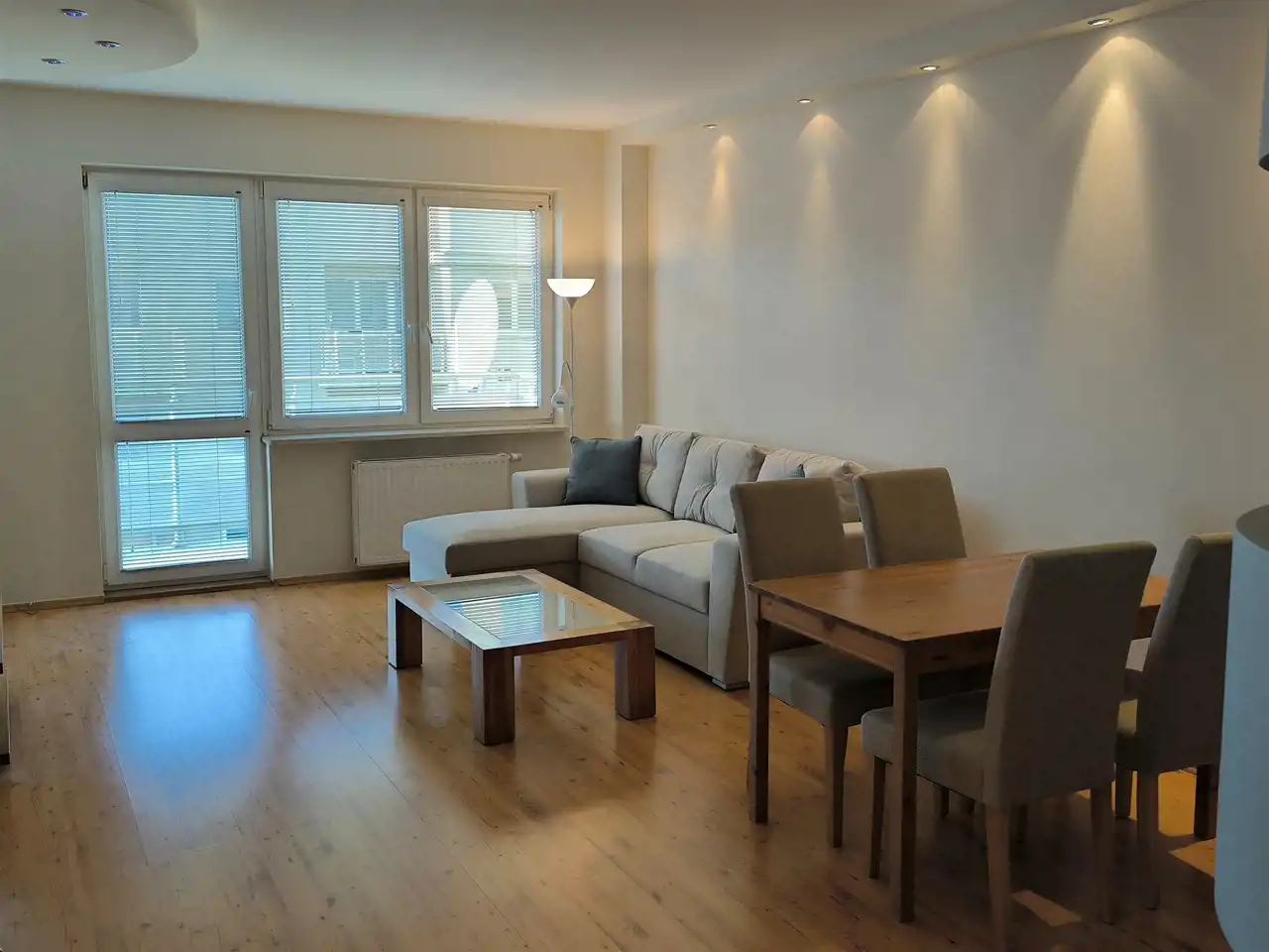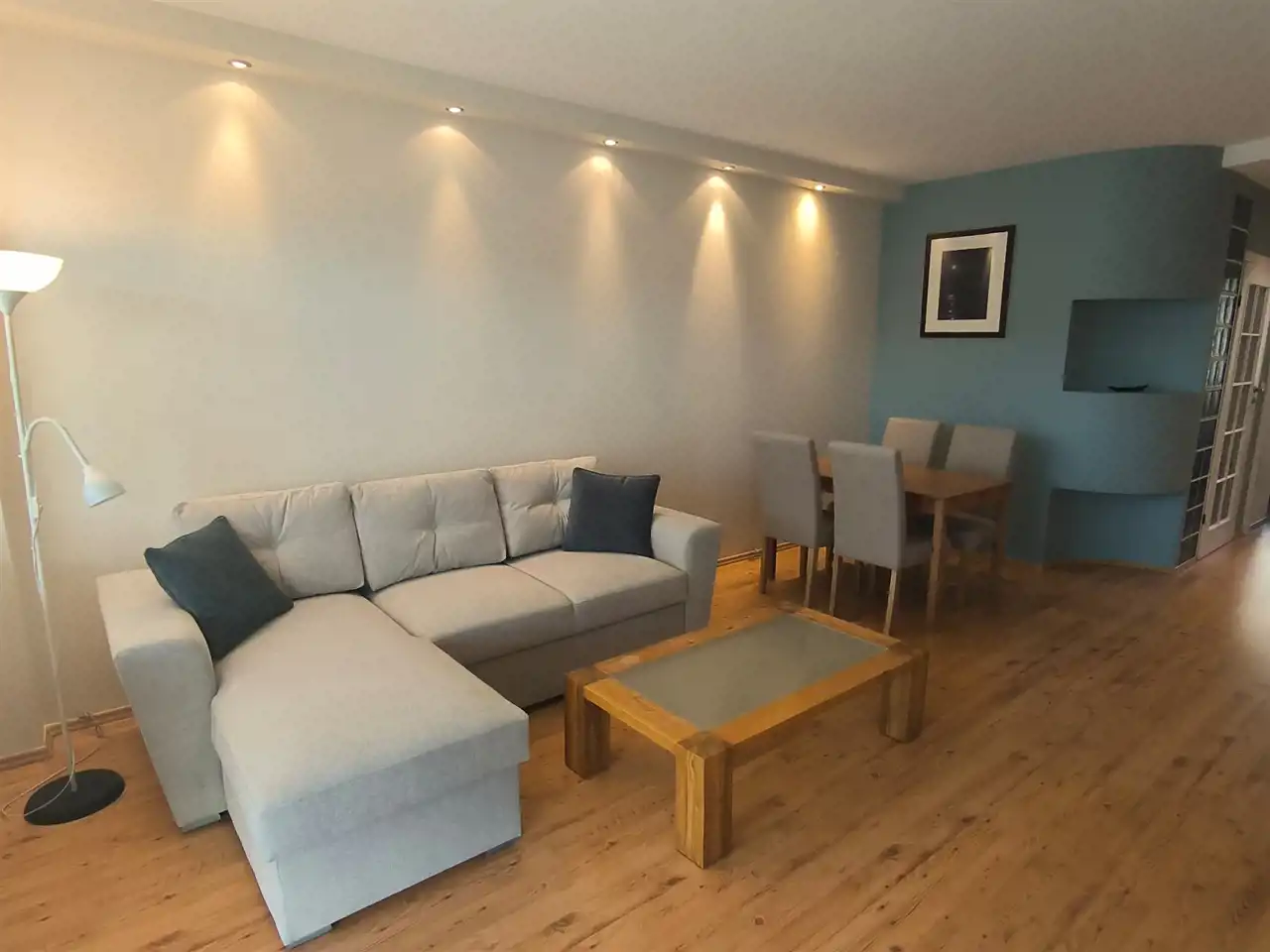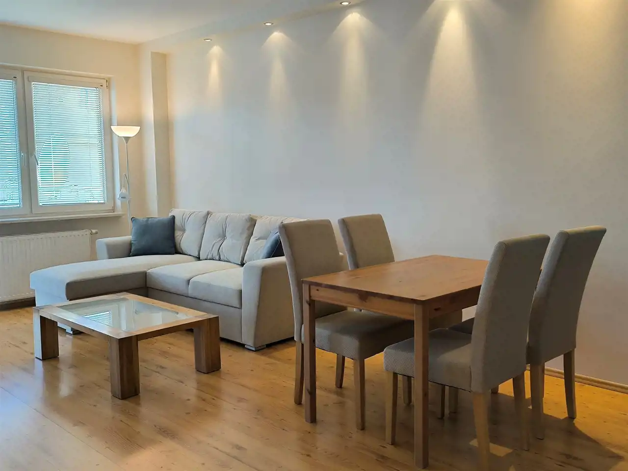 Lokal jest w b. dobrym stanie. Został cały odmalowany. W salonie, częściowo połączonym z kuchnią jest kanapa (nowa), ława, stół i 4 nowe krzesła. Kuchnia w pełni wyposażona, w ostatnich 3 latach została wymieniona lodówka, zmywarka oraz płyta indukcyjna. Pokoje umeblowane, są łóżka. Z przedpokoju jest wejście do wszystkich pomieszczeń łącznie z wejściem do pom. gospodarczego/garderoby. Do mieszkania przynależy miejsce postojowe w garażu podziemnym (które jest w cenie najmu). Sąsiedztwo spokojne. Z opłat licznikowych mamy opłatę za zużycie energii elektrycznej, wody i co.