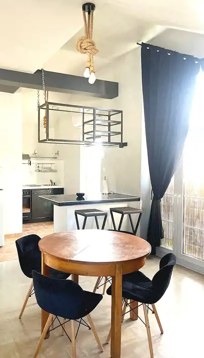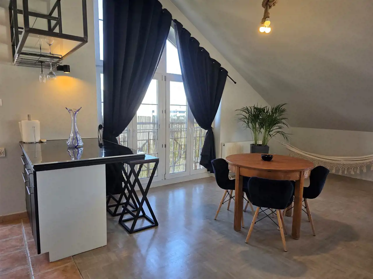 Na powierzchnię składa się: pokój dzienny około (45 m2) wysoki miejscami na 3,5 m z niewielkim (raczej symbolicznym) aneksem kuchennym.