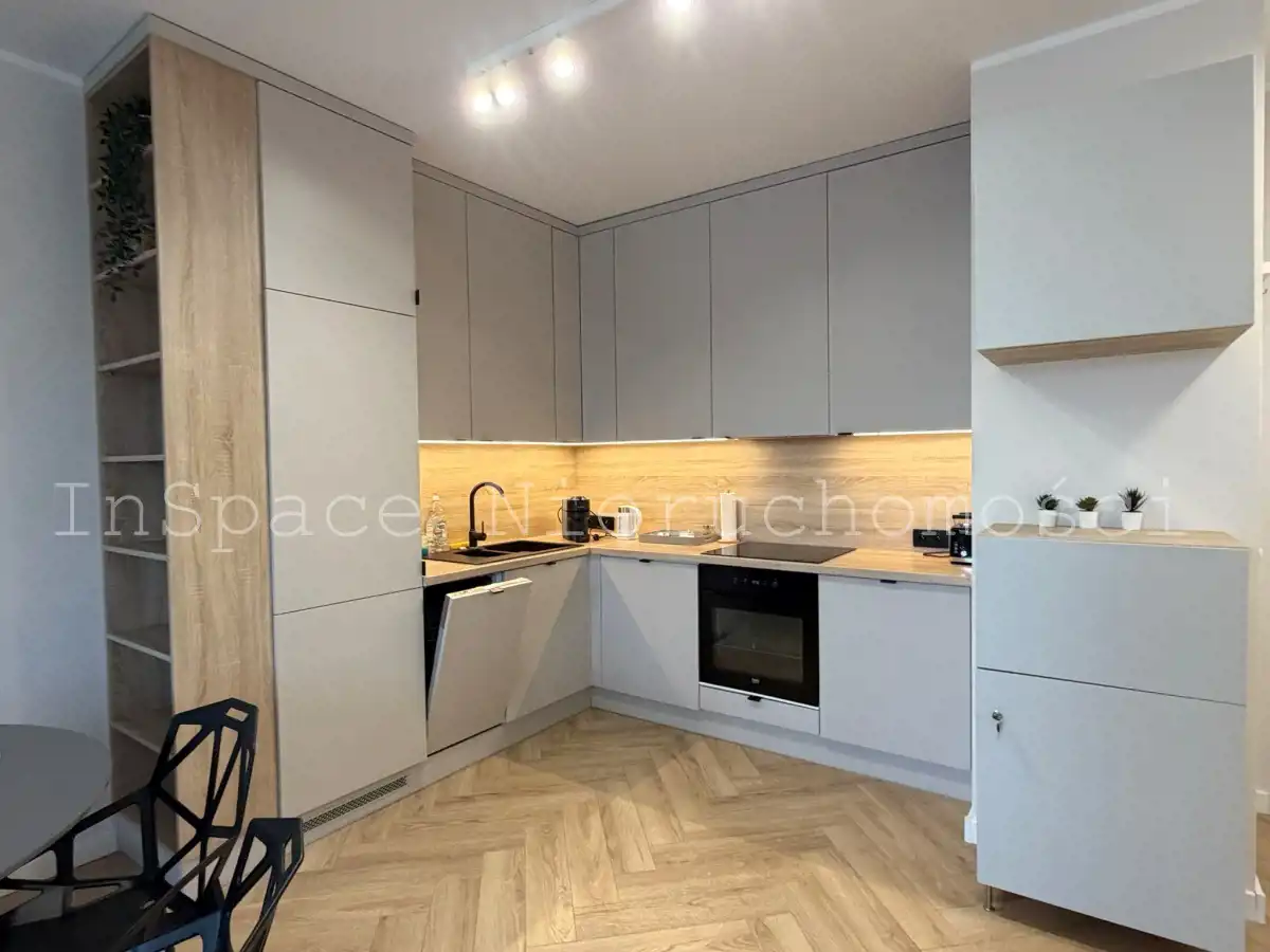 Mieszkanie składa się z otwartej na salon widnej kuchni w zabudowie - lodówka, zmywarka, piekarnik, płyta indukcyjna, okap kuchenny.