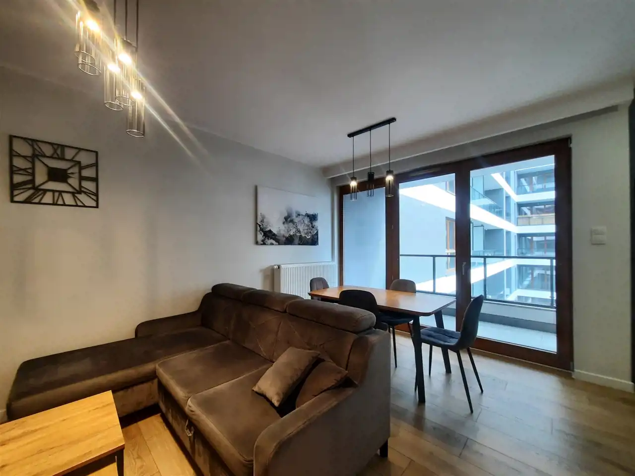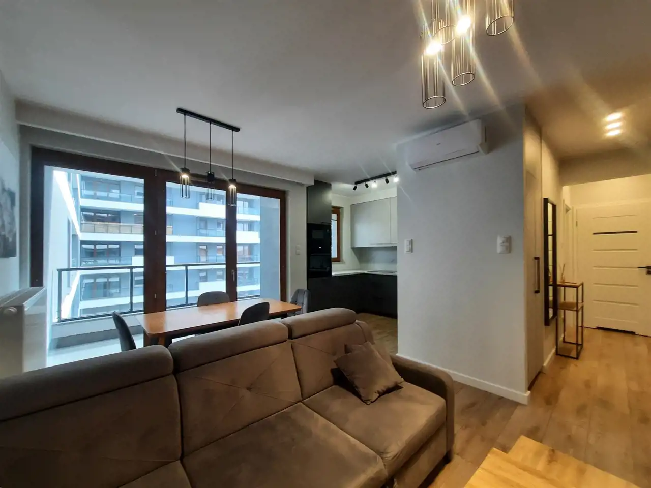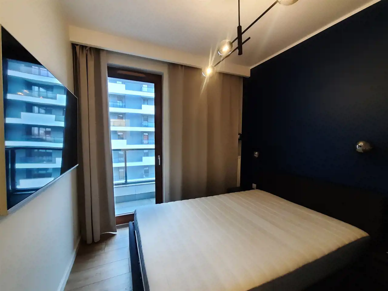 For rent an elegant 2-room apartment (living room with kitchenette and bedroom) with an area of approx. 42 m2, located at Kasprzaka 29A in nearby Wola. The apartment is located on the 8th floor (12 floors) in a modern apartment building, in a building completed at the end of 2022. The apartment has air conditioning and TV in each room.