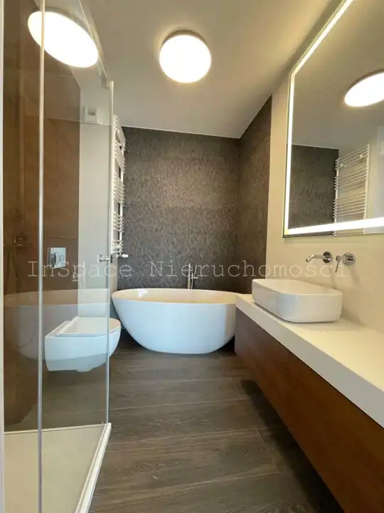 Czynsz najmu: 4600 PLN (w tym czynsz adm. 800 PLN oraz zaliczki na wodę i ogrzewanie) + opłaty za prąd.