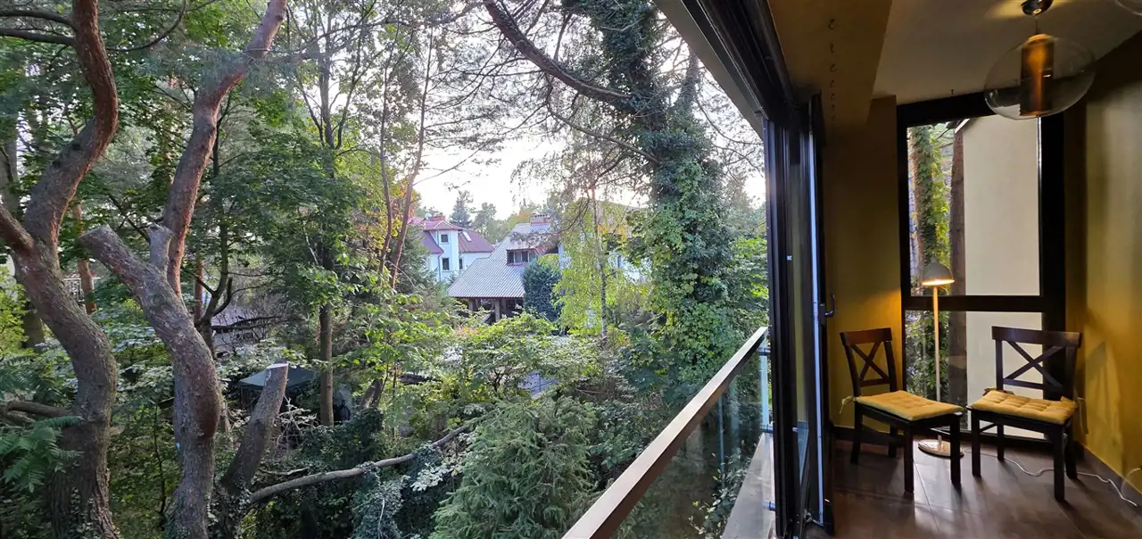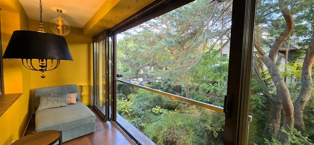 Loggia z przepięknym widokiem, rozsuwanym panoramicznym oknem, podgrzewaną podłogą, będzie Twoim ulubionym miejscem do pracy i wypoczynku przez cały rok.