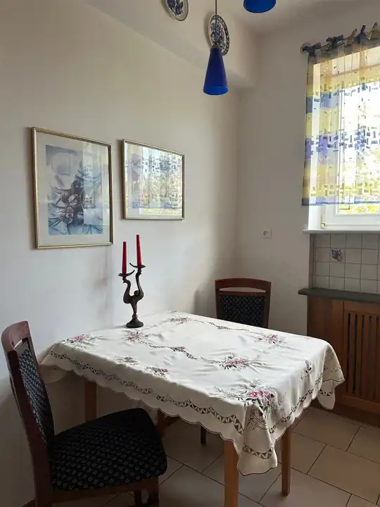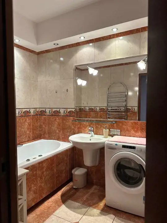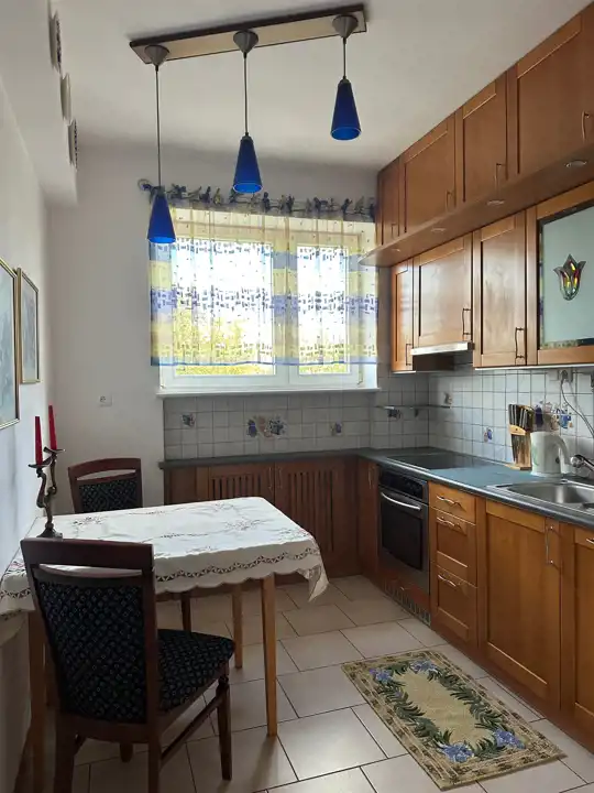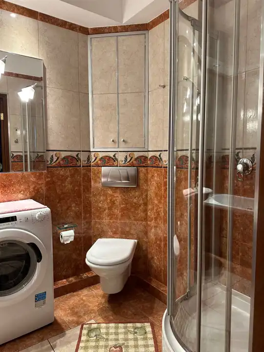Mieszkanie ciche i ciepłe. Mieszkanie umeblowane. Kuchnia kompletnie wyposażona. Łazienka posiada kabinę prysznicową oraz wannę z jacuzzi. Pralka na wyposażeniu.