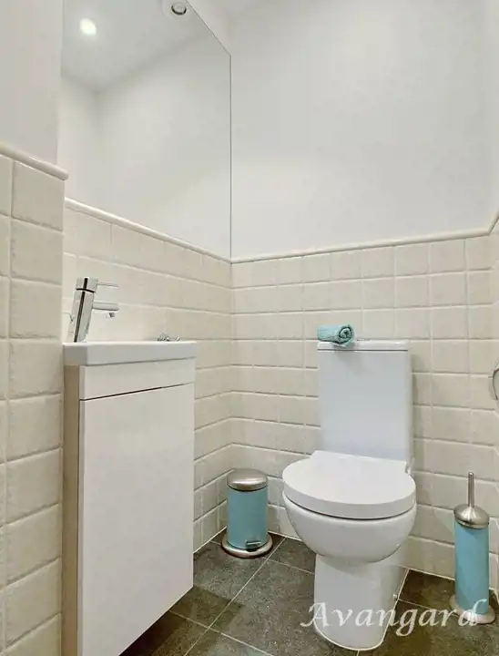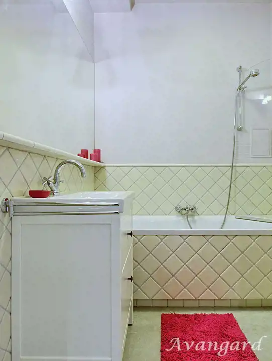 Nowe glazury w łazience i wc w jasnym ciepłym kolorze.