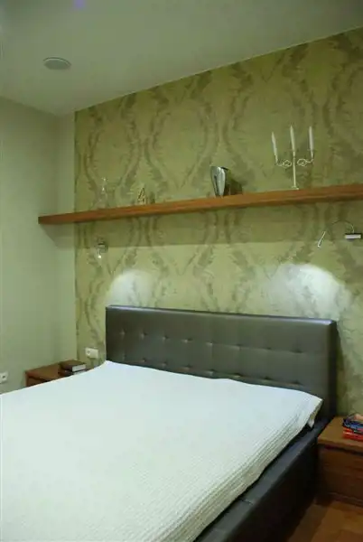 - Sypialnia: podwójne łóżko 160*200, 2 nocne stoliki, półki;