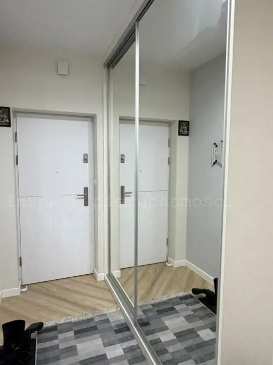 -Przedpokój: duża szafa w zabudowie z lustrem.