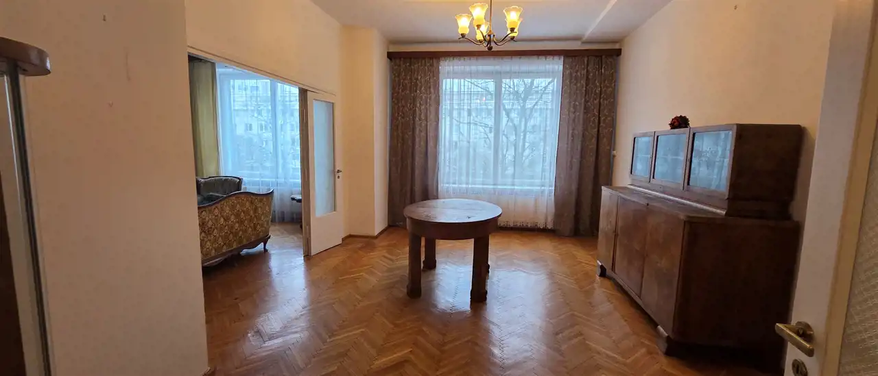 Mieszkanie bardzo klimatyczne - z zachowaniem elementów przedwojennej kamienicy - wysokość 3,15 m, duże okna - wspaniale doświetlające wnętrza; szeroki holl ok 12m2 - z niego wejście 2 dużych pokoi (ok 26m2 i 22m2) połączonych szerokim drzwiami i do 2 małych przedpokoi prowadzących do kolejnych pomieszczeń : 3 pokoi (ok 18 m2 + ok 13m2 + ok 6 m2) osobnej widnej kuchni, łazienki z toaletą; jest jeszcze dodatkowe WC.