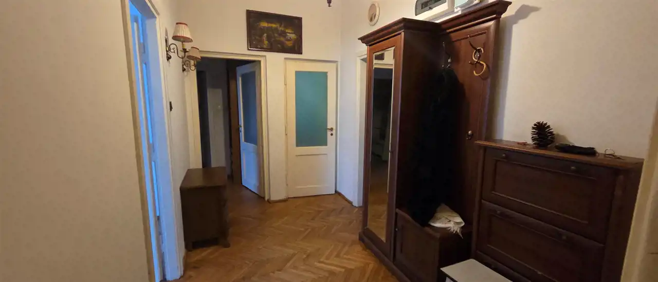 Mieszkanie bardzo klimatyczne - z zachowaniem elementów przedwojennej kamienicy - wysokość 3,15 m, duże okna - wspaniale doświetlające wnętrza; szeroki hal ok 12m2 - z niego wejście 2 dużych pokoi (ok 26m2 i 22m2) połączonych szerokim drzwiami i do 2 małych przedpokoi prowadzących do kolejnych pomieszczeń : 3 pokoi (ok 18 m2 + ok 13m2 + ok 6 m2) osobnej widnej kuchni, łazienki z toaletą; jest jeszcze dodatkowe WC.