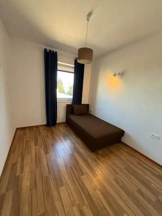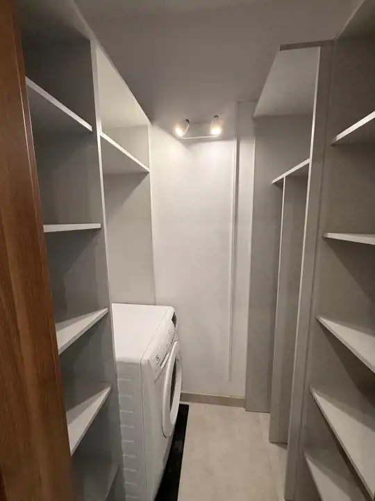Wyposażenie: Mieszkanie jest w pełni umeblowane – szafy w zabudowie, nowoczesne meble, sprzęt AGD, klimatyzacja w salonie.