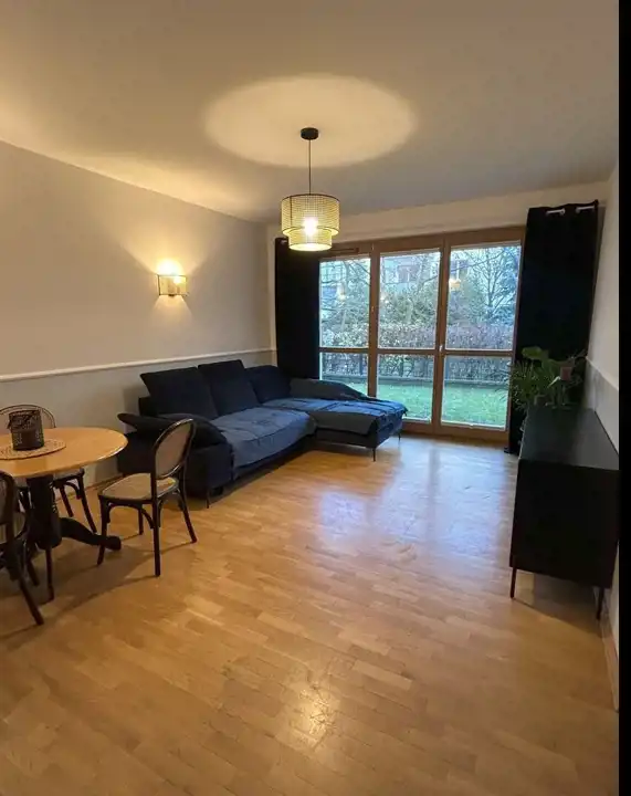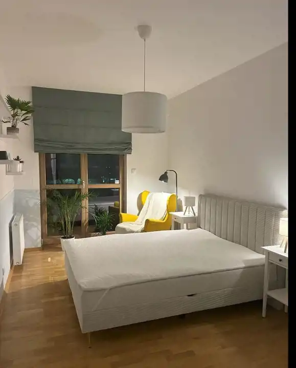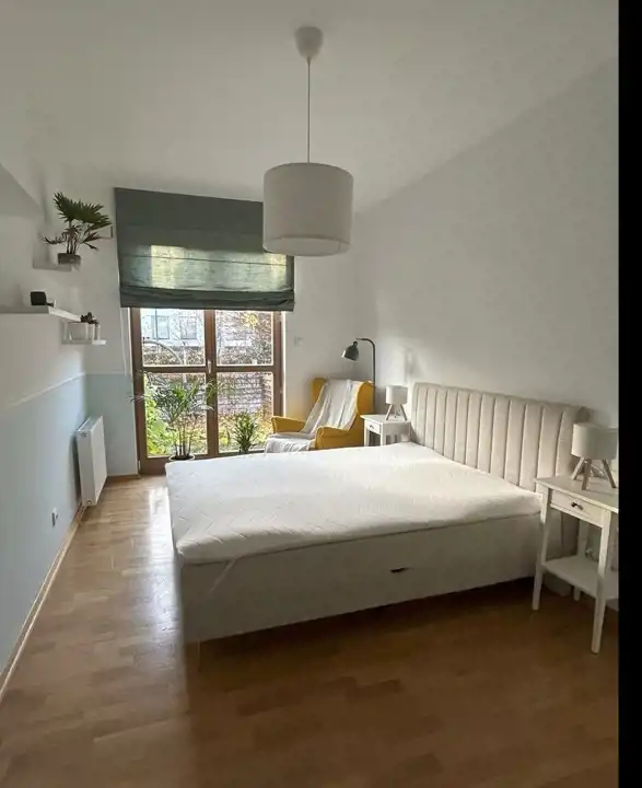 Przestronne, klimatyczne mieszkanie o powierzchni 90 m², położone na parterze w bezpiecznym, zamkniętym osiedlu. Wnętrza wykończone z dbałością o detale: parkiet na podłogach, liczne szafy w zabudowie oraz duża garderoba. Dodatkowym atutem jest oddzielne pomieszczenie na pralkę (pralnia). Okna wyposażone w rolety przeciwwłamaniowe sterowane elektrycznie. Pomimo parteru zachowana jest pełna prywatność. Do mieszkania przynależą dwa ogródki z możliwością zaaranżowania według własnego życzenia. W cenie najmu dwa miejsca postojowe w podziemnym garażu. Możliwość zamieszkania od zaraz; na życzenie istnieje opcja zmiany aranżacji pokoi. Idealne dla rodziców z dziećmi - w bardzo bliskiej odległości szkoła i przedszkole.