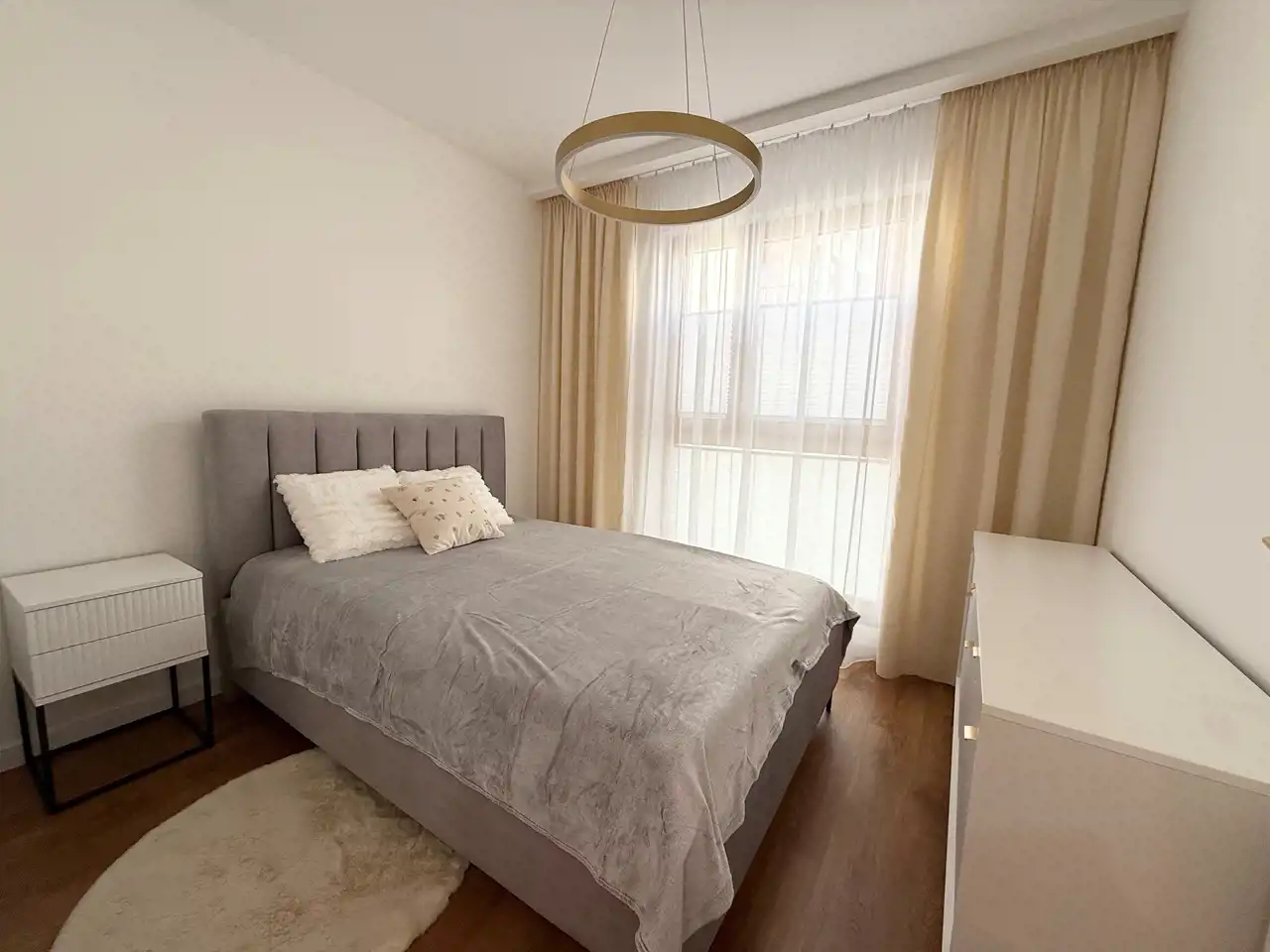Sypialnia umeblowana jest w łóżko dwuosobowe, komodę oraz szafę (montaż będzie w połowie lutego 2026 r.).