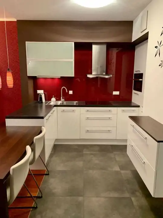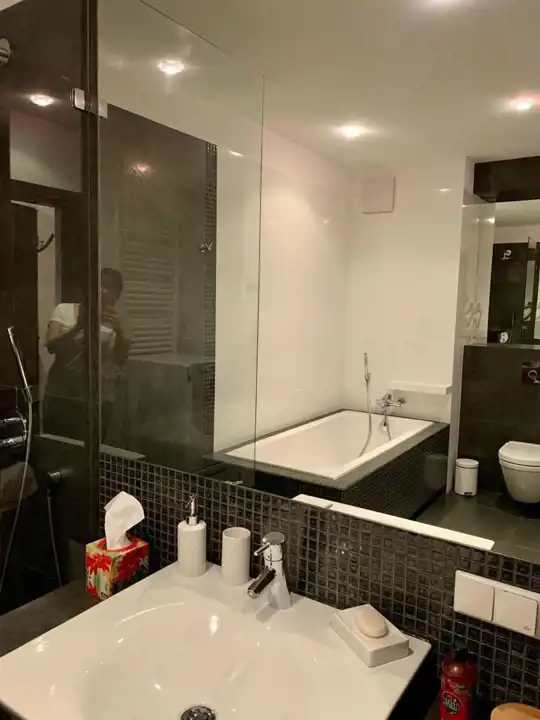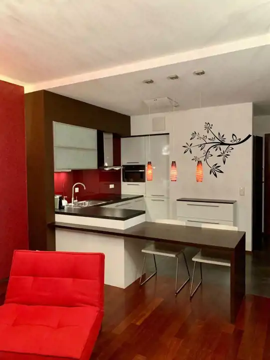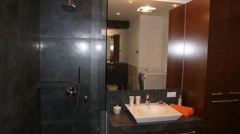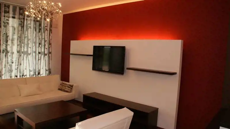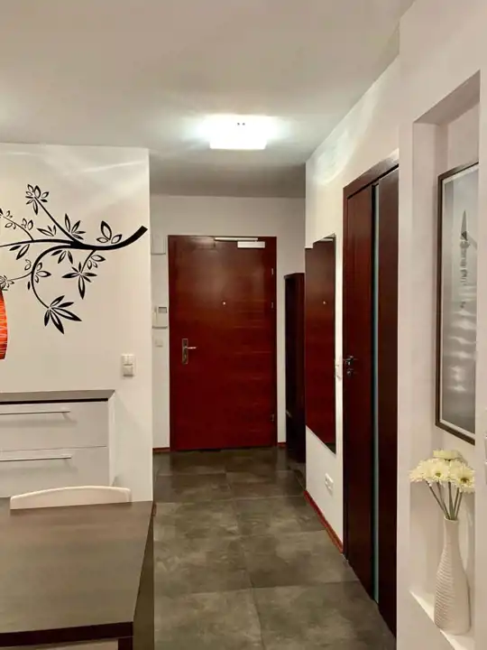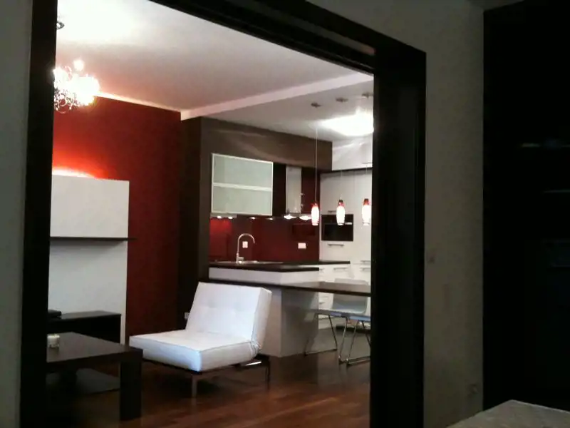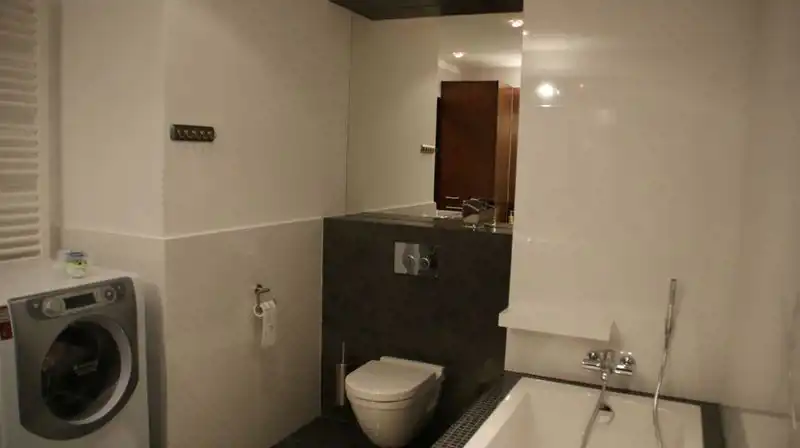 Apartament z 2009 roku , wykończony wysokiej klasy materiałami, w pełni umeblowany i wyposażony (AGD, zmywarka, lodówka, płyta grzewcza, pralko-suszarka, piekarnik elektryczny z funkcją mikrofali i grilla + drobne sprzęty )i RTV, podłączenie internet, telefon.