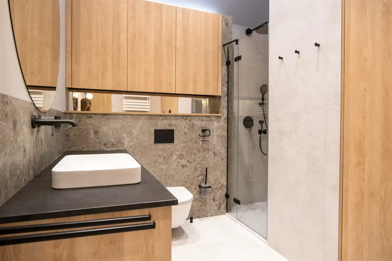 Lokal urządzono nowocześnie z dbałością o wygodę mieszkańców.