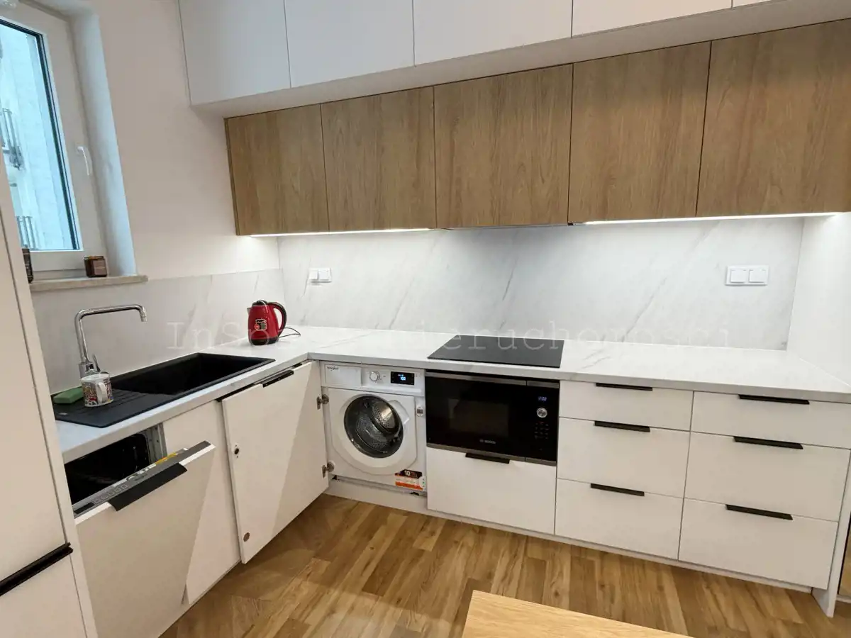 - Aneks kuchenny: lodówka, zmywarka, mikrofalówka, płyta indukcyjna, okap kuchenny, pralka. Nie ma piekarnika.