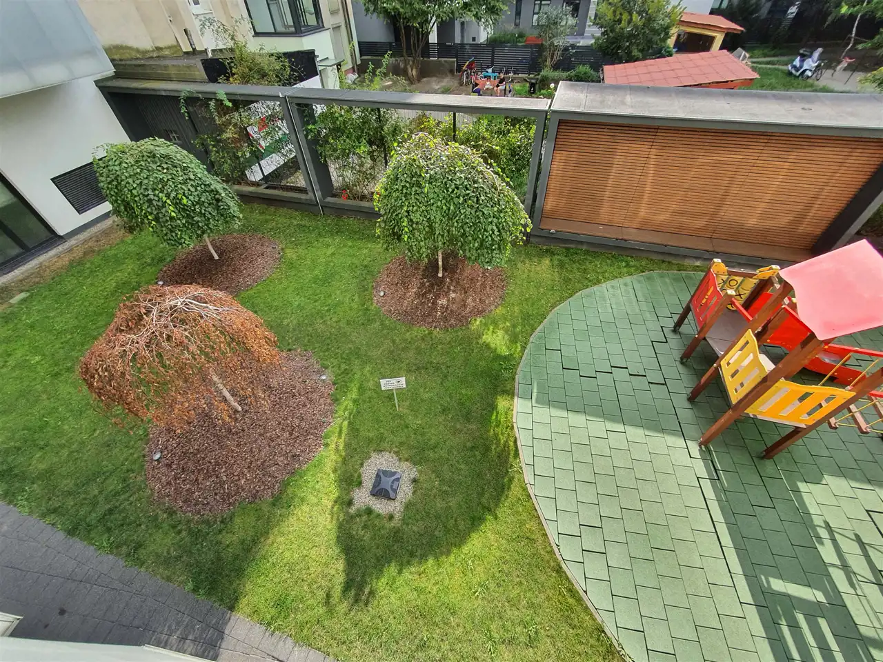 Nieopodal basen, kameralny park, wokół restauracje, kawiarnie z uroczymi ogródkami, sklepy, punkty usługowe, banki, centra medyczne itp.