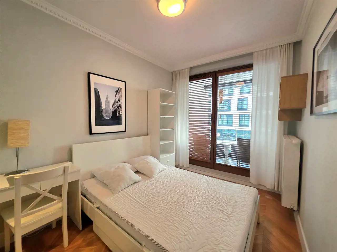 * Gabinet bądź druga sypialnia z łóżkiem, szafą oraz z wyjściem na drugi balkon